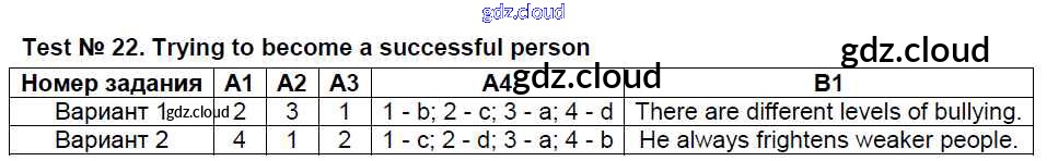 Ответ на задание Test №22. Trying to become a successful person Контрольно-измерительные материалы (КИМ) Английский язык  за 8 (восьмой) класс Лысакова   2018