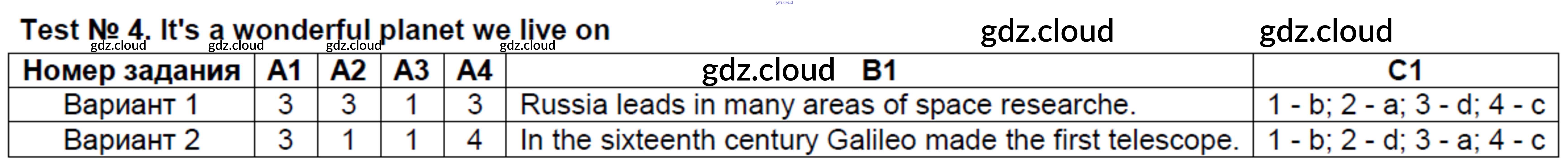 Ответ на задание Test №4. It's a wonderful planet we live on Контрольно-измерительные материалы (КИМ) Английский язык  за 8 (восьмой) класс Лысакова   2018