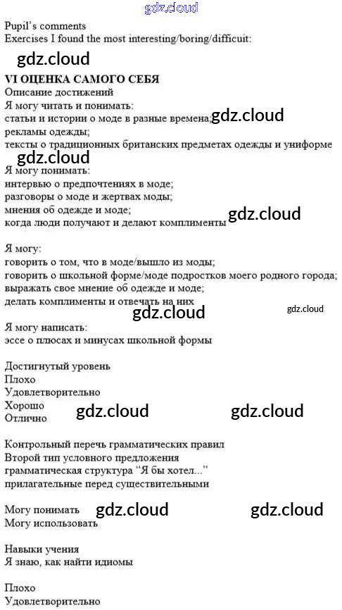 Test Ответы к Unit 6. Changing times, changing styles по Английскому языку 8 класс Рабочая тетрадь Кузовлев    Просвещение