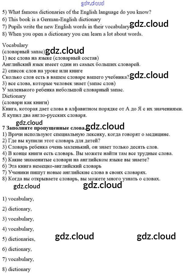 Ответ на задание 7 Учебник Английский язык  за 8 (восьмой) класс Афанасьева, Михеева Новый курс  2017