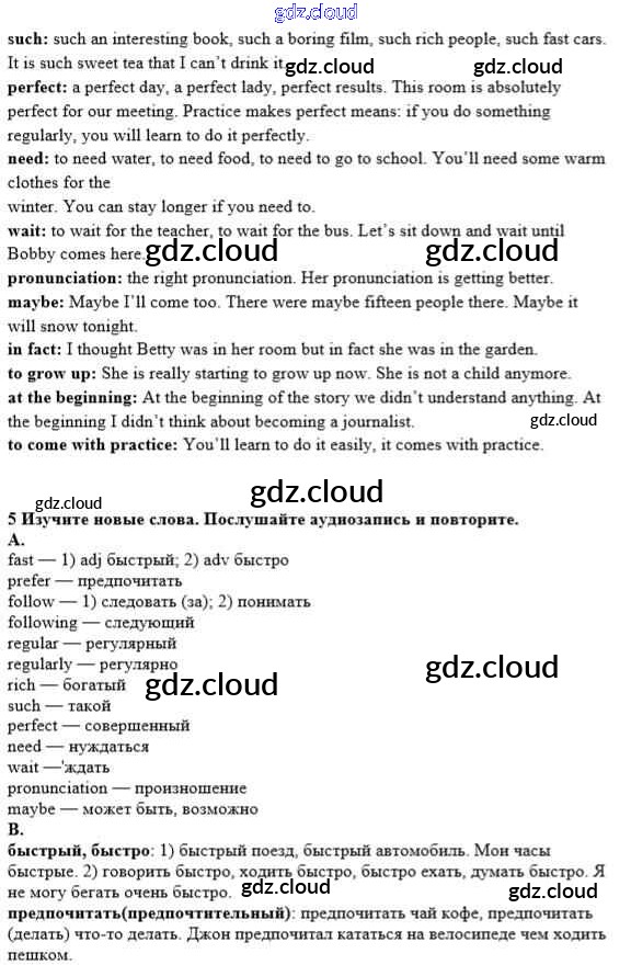 Ответ на задание 5 Учебник Английский язык  за 8 (восьмой) класс Афанасьева, Михеева Новый курс  2017