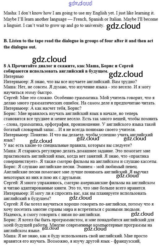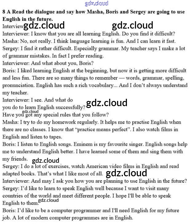 Ответ на задание 8 Учебник Английский язык  за 8 (восьмой) класс Афанасьева, Михеева Новый курс  2017