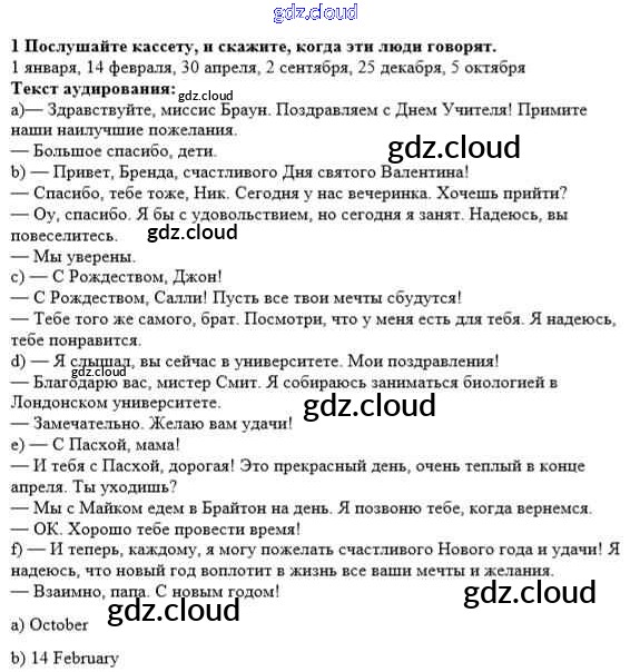 Ответ на задание 1 Учебник Английский язык  за 8 (восьмой) класс Афанасьева, Михеева Новый курс  2017
