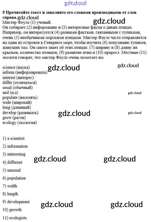 Ответ на задание 9 Учебник Английский язык  за 8 (восьмой) класс Афанасьева, Михеева Новый курс  2017