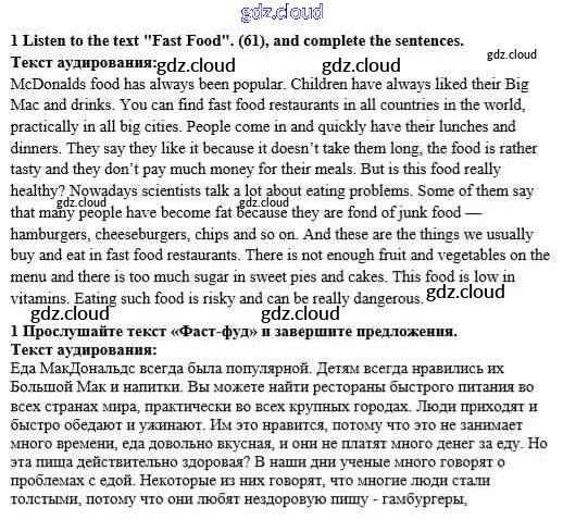 Ответ на задание 1 Учебник Английский язык  за 8 (восьмой) класс Афанасьева, Михеева Новый курс  2017