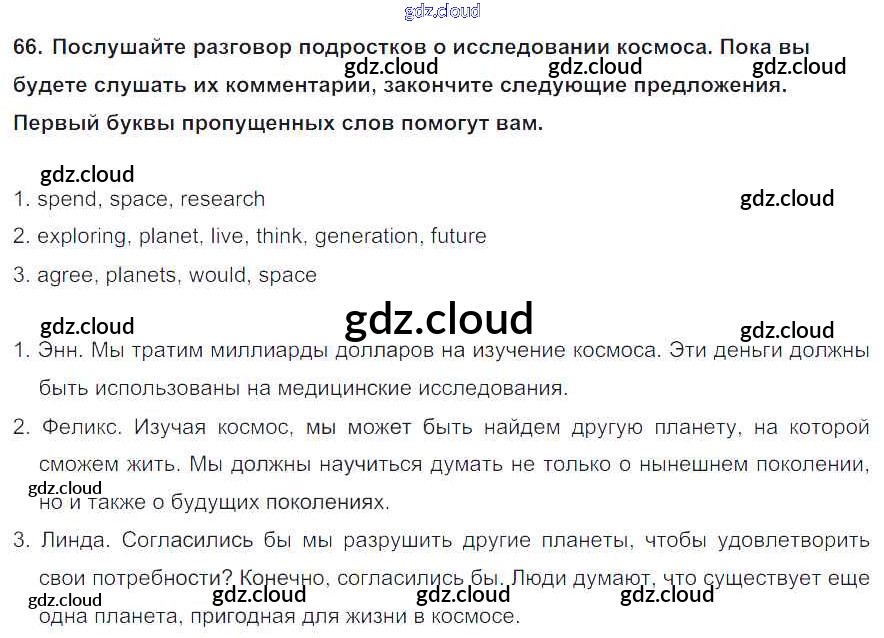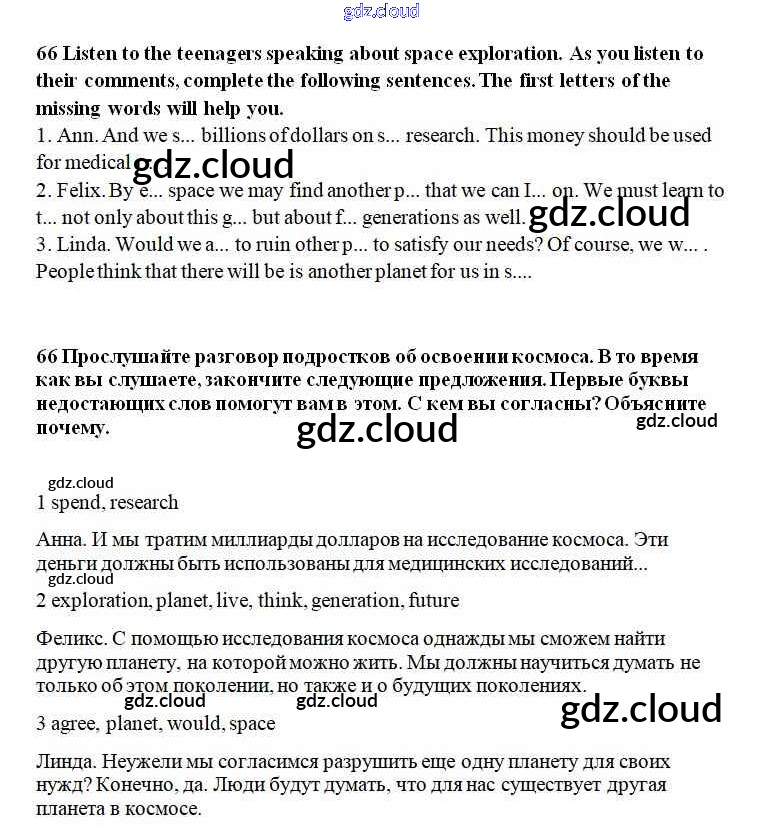 Ответ на задание 66 Учебник Английский язык  за 8 (восьмой) класс Биболетова, Трубанева Enjoy English  2015, 2017