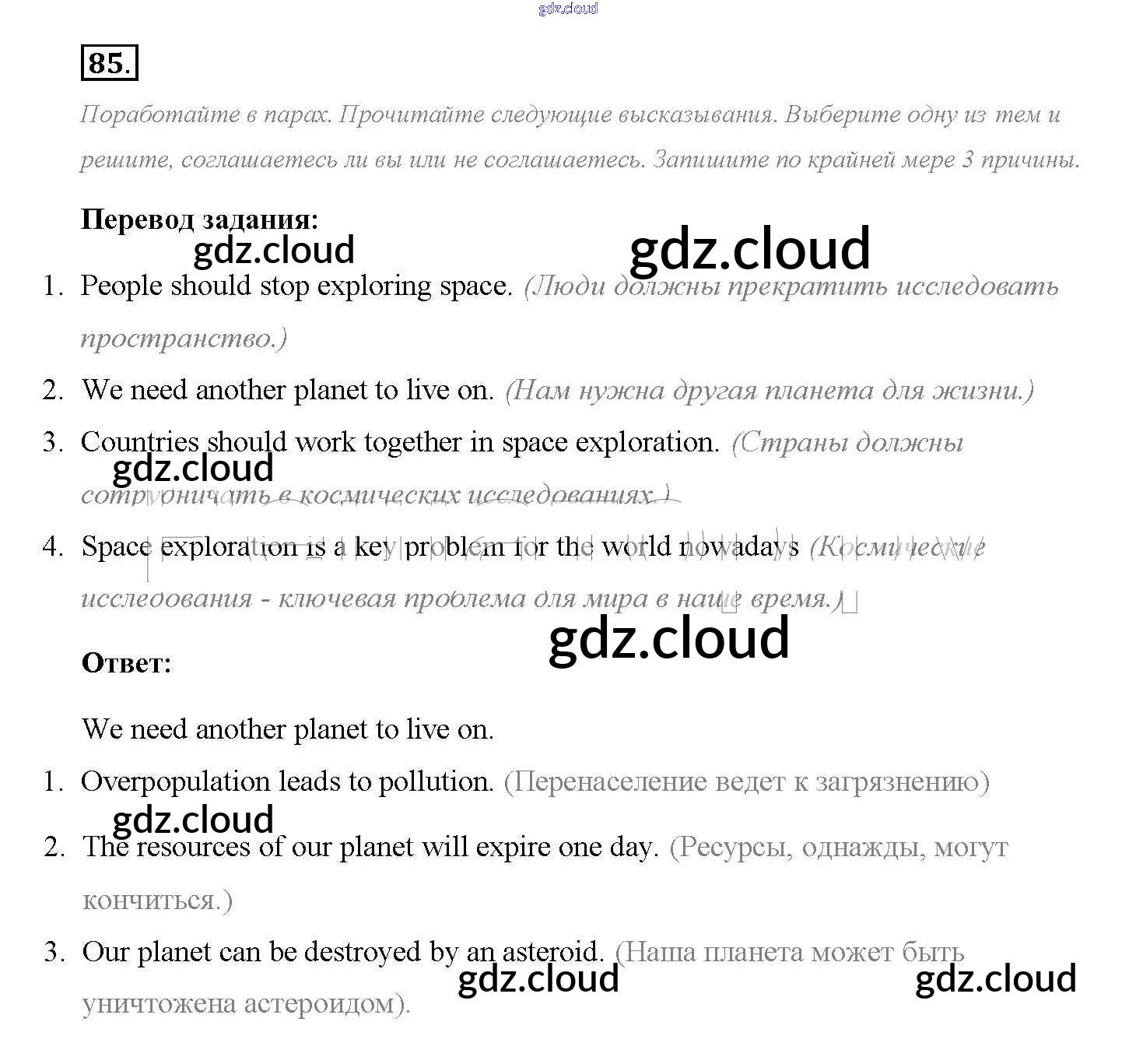 Ответ на задание 85 Учебник Английский язык  за 8 (восьмой) класс Биболетова, Трубанева Enjoy English  2015, 2017