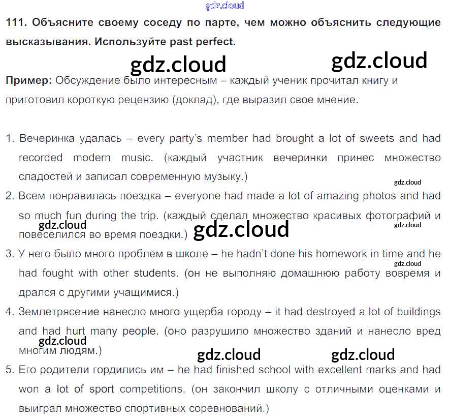 Ответ на задание 111 Учебник Английский язык  за 8 (восьмой) класс Биболетова, Трубанева Enjoy English  2015, 2017