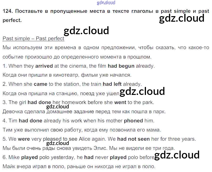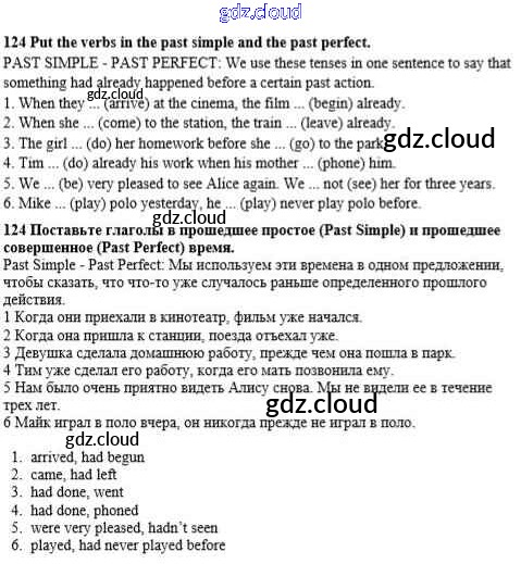 Ответ на задание 124 Учебник Английский язык  за 8 (восьмой) класс Биболетова, Трубанева Enjoy English  2015, 2017