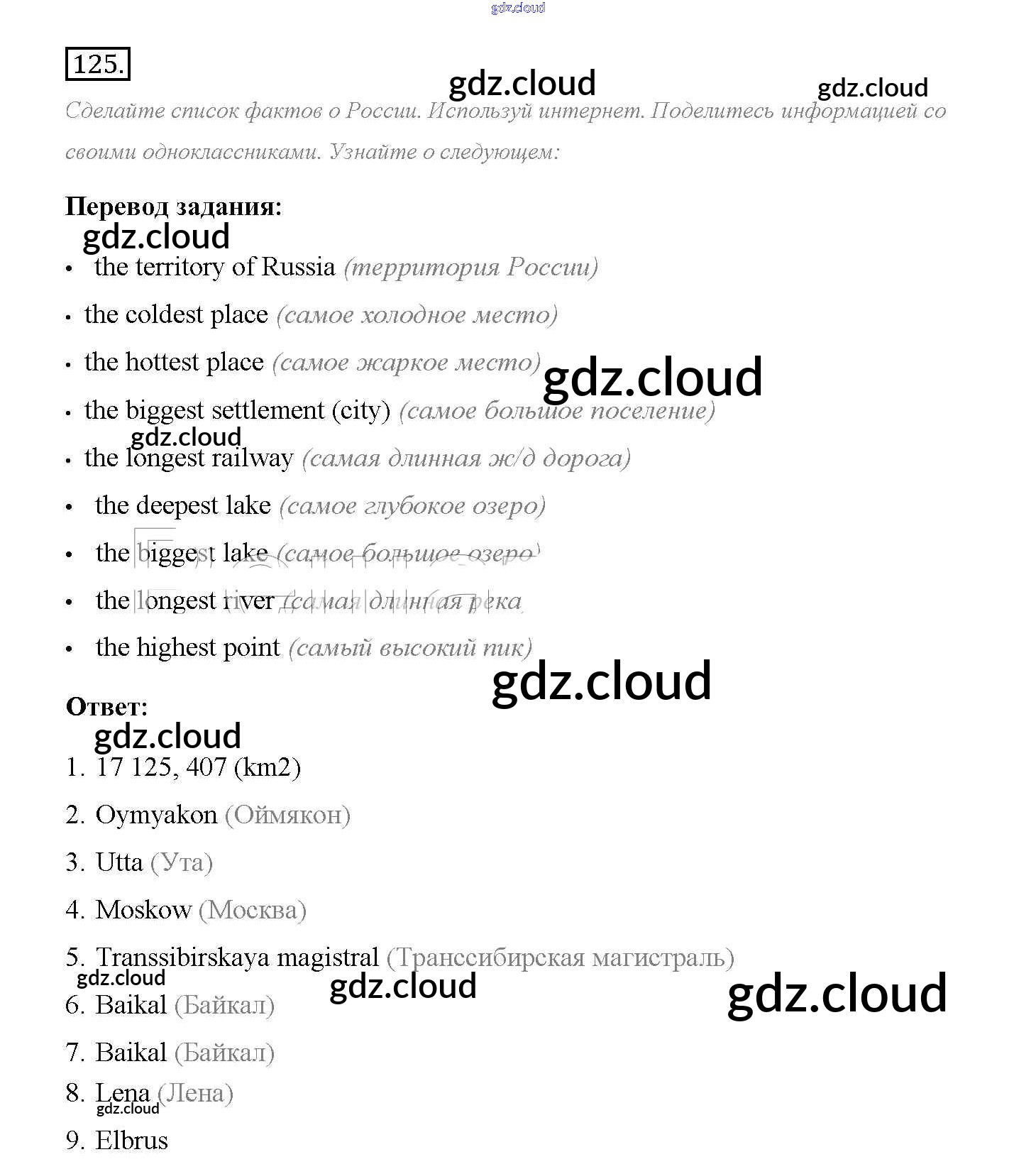 Ответ на задание 125 Учебник Английский язык  за 8 (восьмой) класс Биболетова, Трубанева Enjoy English  2015, 2017