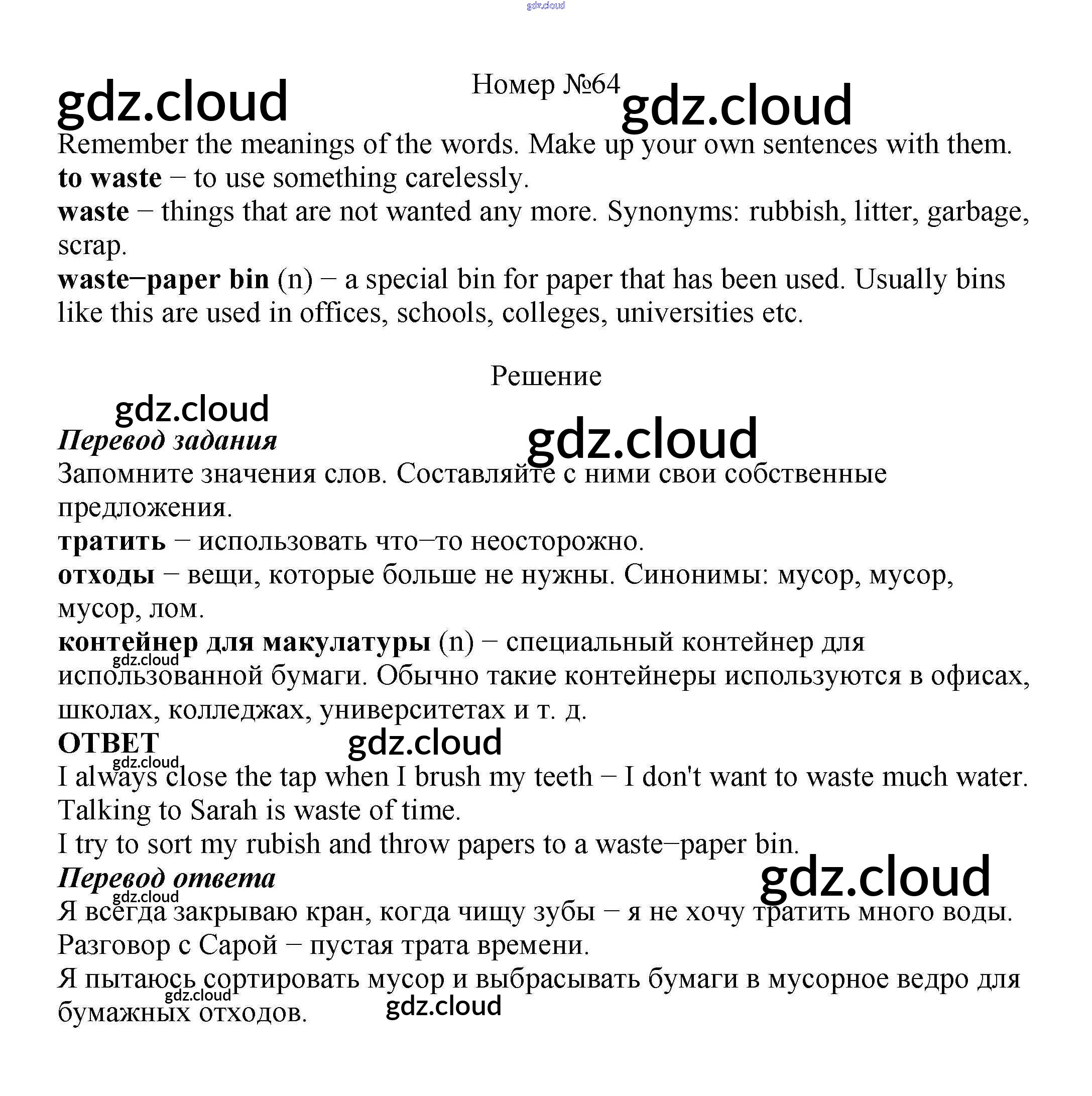 Ответ на задание 64 Учебник Английский язык  за 8 (восьмой) класс Биболетова, Трубанева Enjoy English  2015, 2017