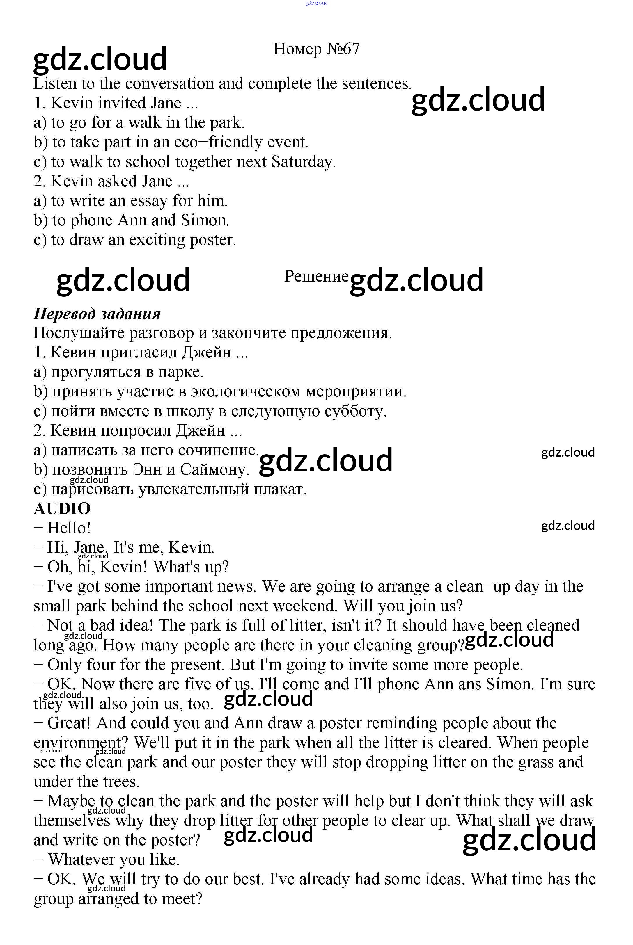 Ответ на задание 67 Учебник Английский язык  за 8 (восьмой) класс Биболетова, Трубанева Enjoy English  2015, 2017