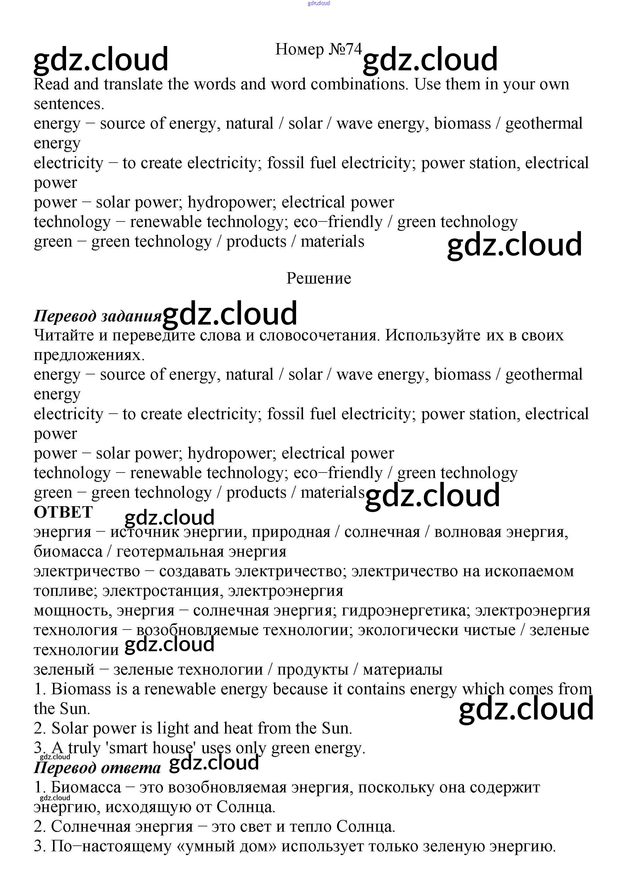 Ответ на задание 74 Учебник Английский язык  за 8 (восьмой) класс Биболетова, Трубанева Enjoy English  2015, 2017