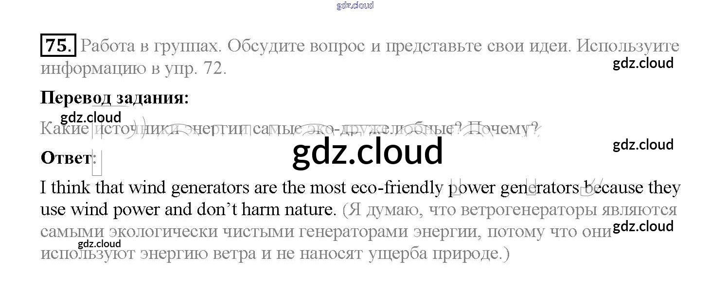 Ответ на задание 75 Учебник Английский язык  за 8 (восьмой) класс Биболетова, Трубанева Enjoy English  2015, 2017