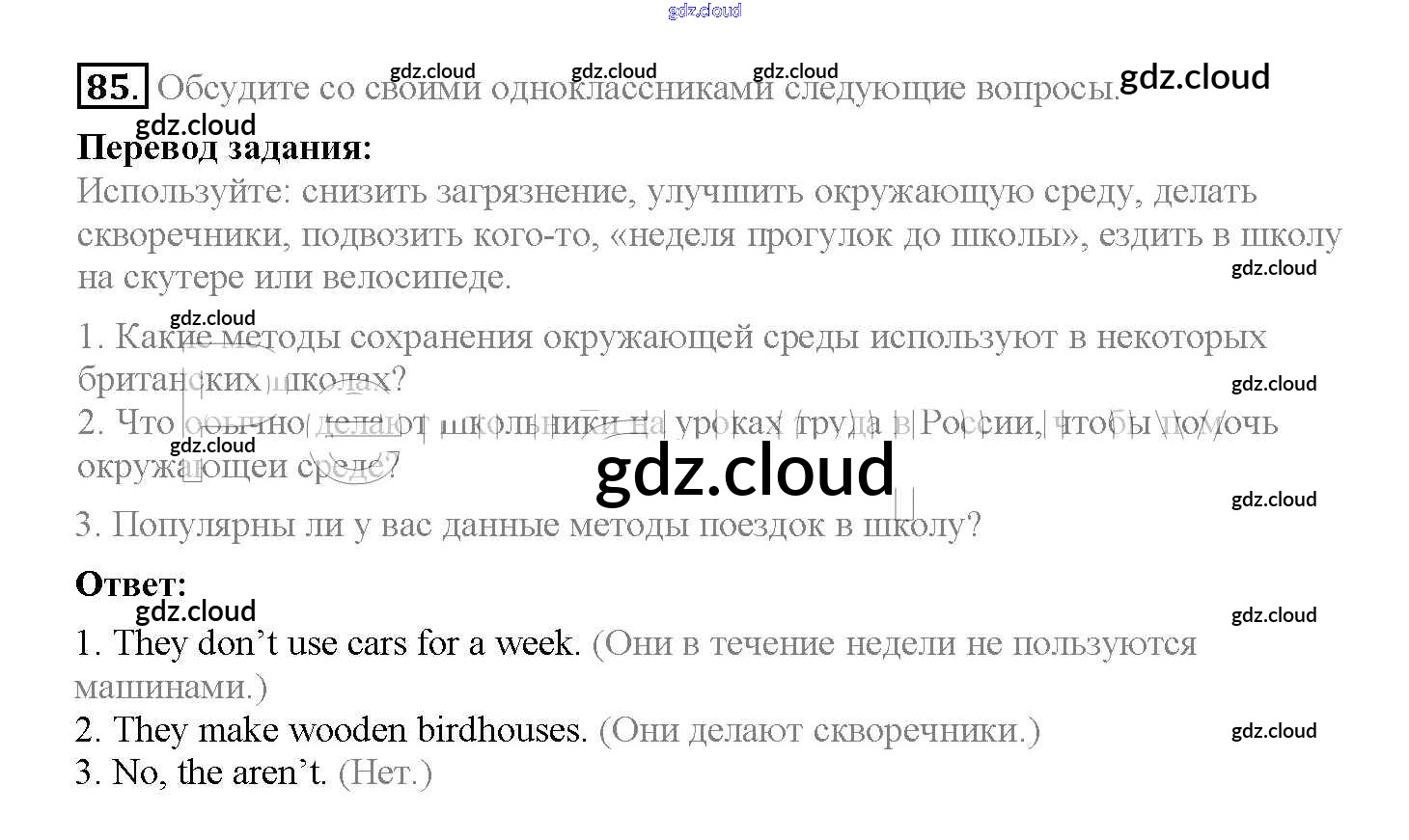 Ответ на задание 85 Учебник Английский язык  за 8 (восьмой) класс Биболетова, Трубанева Enjoy English  2015, 2017