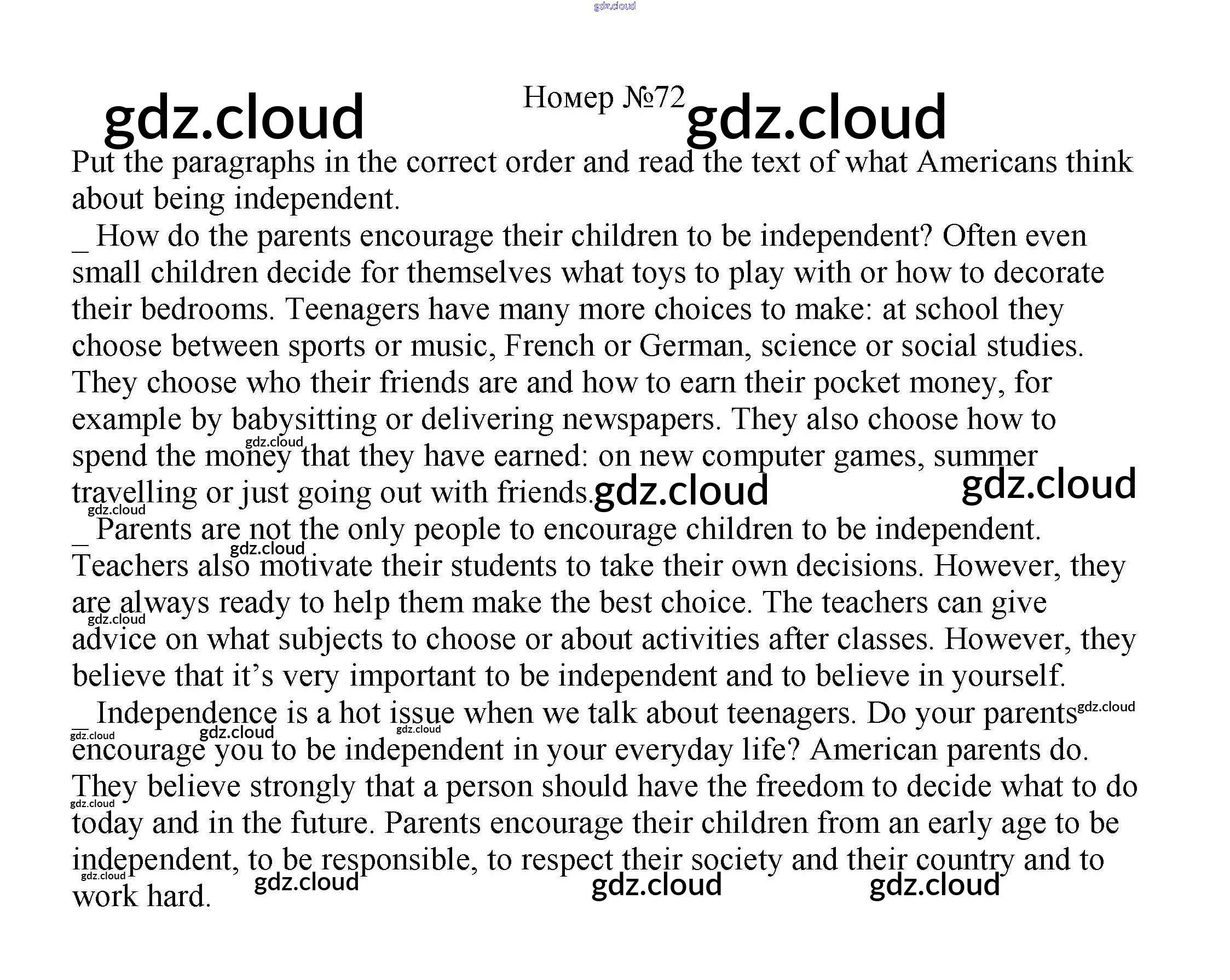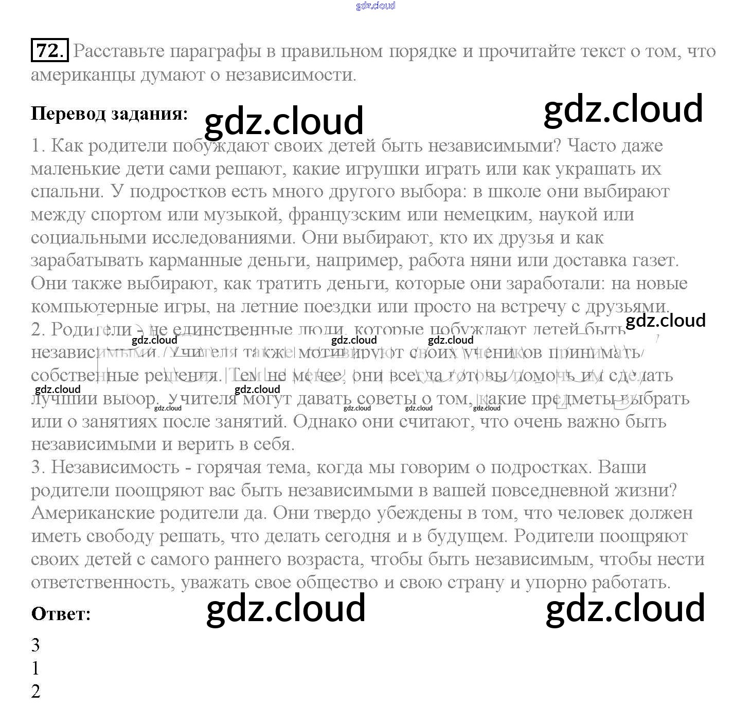 Ответ на задание 72 Учебник Английский язык  за 8 (восьмой) класс Биболетова, Трубанева Enjoy English  2015, 2017