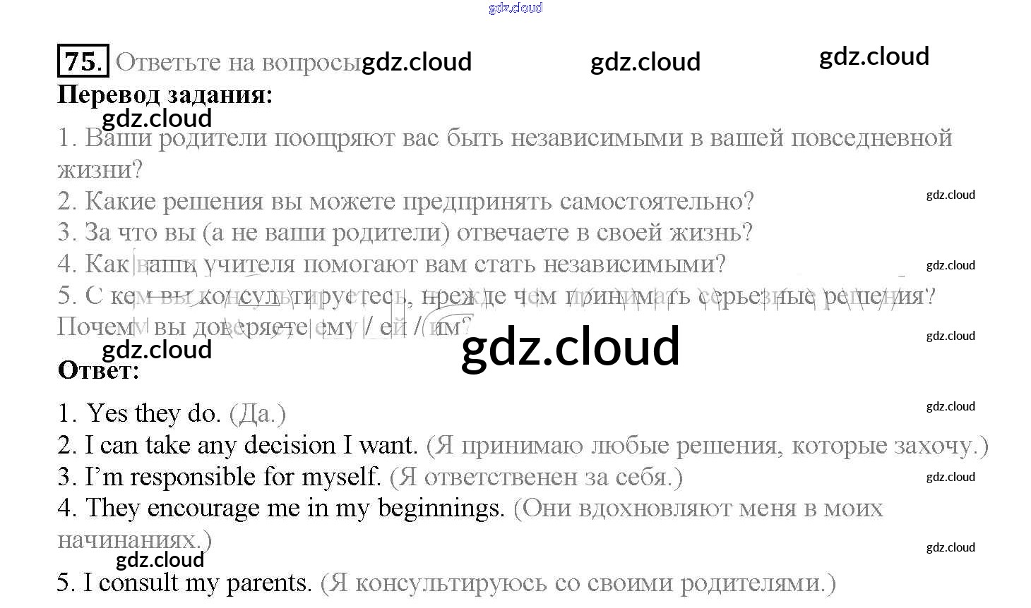 Ответ на задание 75 Учебник Английский язык  за 8 (восьмой) класс Биболетова, Трубанева Enjoy English  2015, 2017