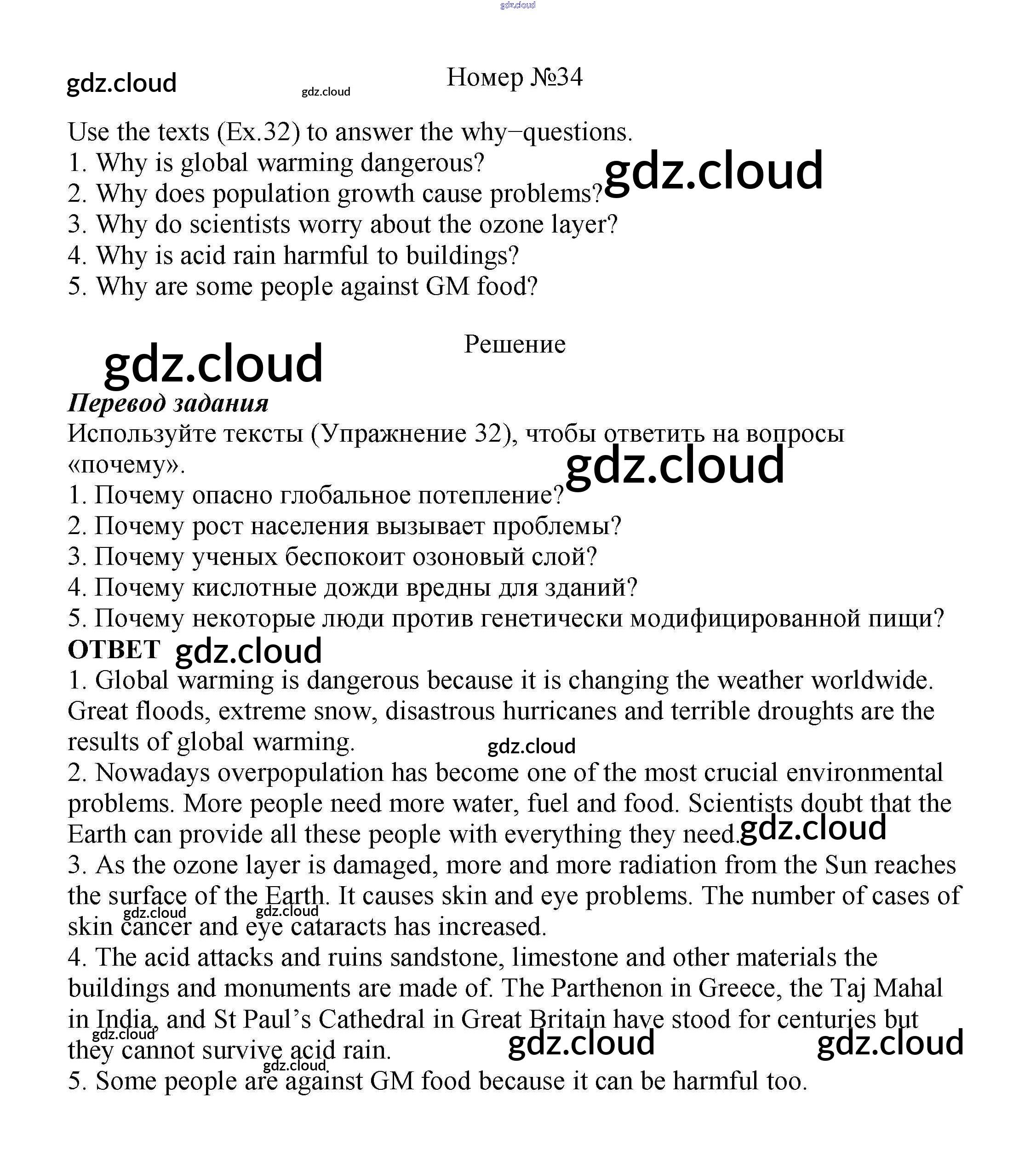 Ответ на задание 34 Учебник Английский язык за 8 (восьмой) класс Биболетова, Трубанева Enjoy English 2015, 2017