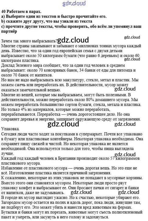 Ответ на задание 40 Учебник Английский язык  за 8 (восьмой) класс Биболетова, Трубанева Enjoy English  2015, 2017