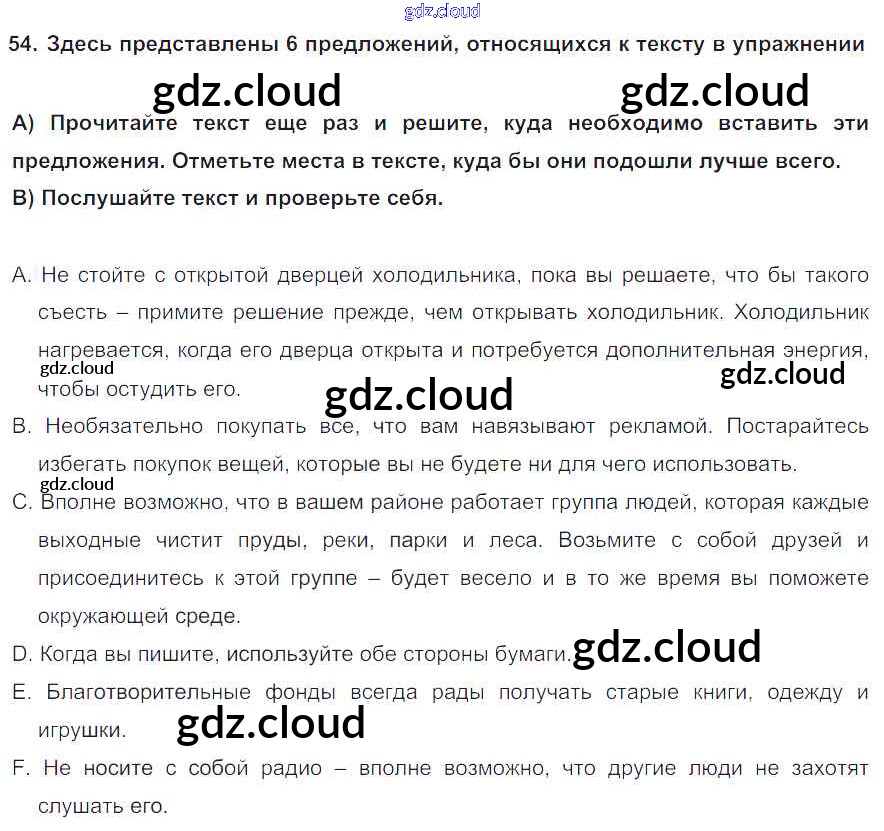 Ответ на задание 54 Учебник Английский язык  за 8 (восьмой) класс Биболетова, Трубанева Enjoy English  2015, 2017
