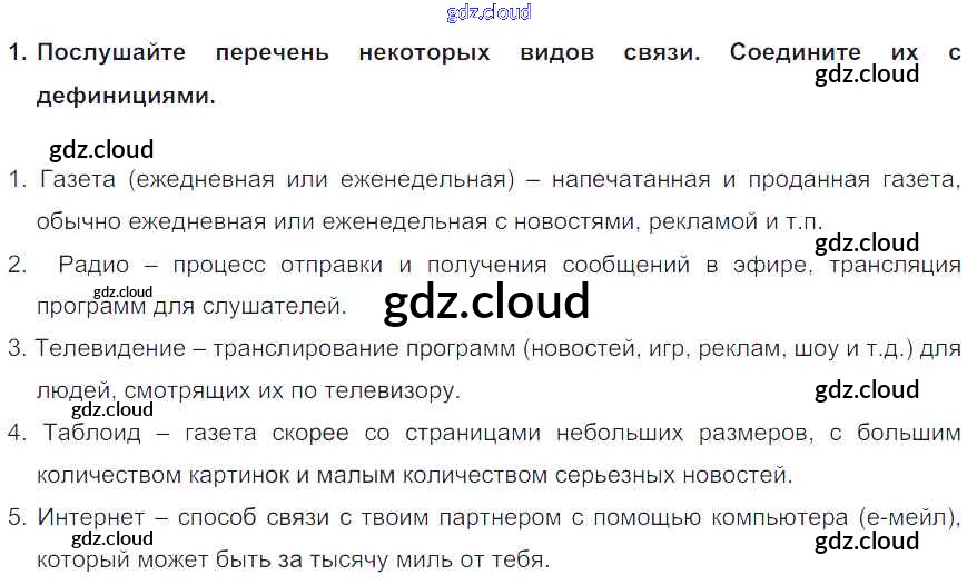 Ответ на задание 1 Учебник Английский язык  за 8 (восьмой) класс Биболетова, Трубанева Enjoy English  2015, 2017