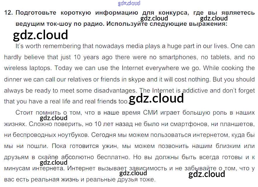Ответ на задание 12 Учебник Английский язык  за 8 (восьмой) класс Биболетова, Трубанева Enjoy English  2015, 2017