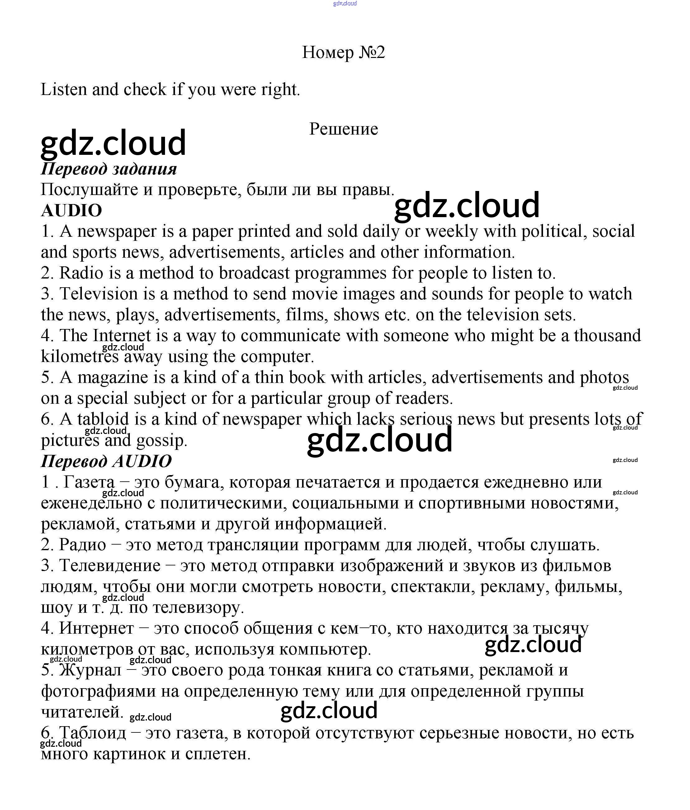 Ответ на задание 2 Учебник Английский язык  за 8 (восьмой) класс Биболетова, Трубанева Enjoy English  2015, 2017