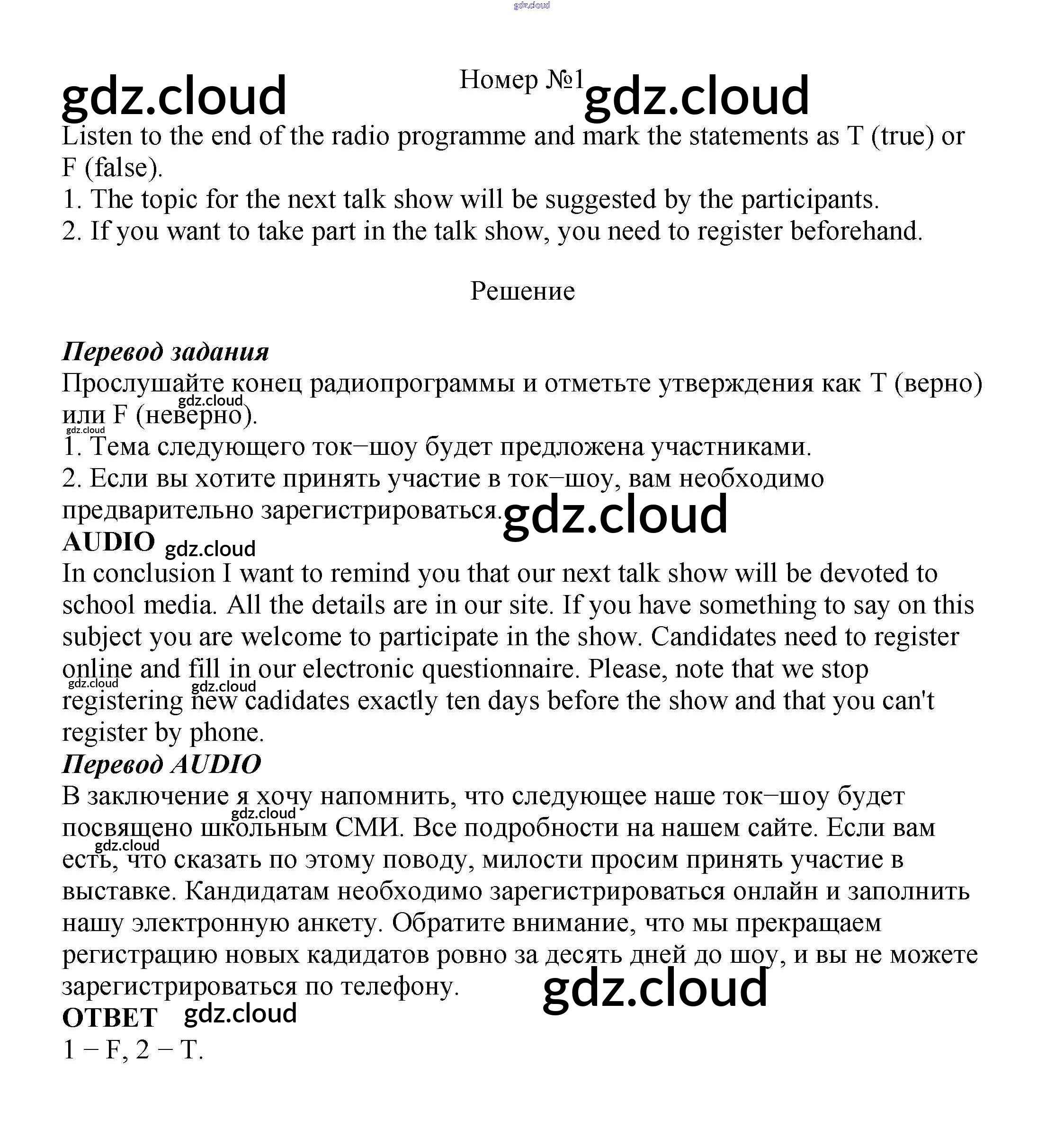 Ответ на задание 1 Учебник Английский язык  за 8 (восьмой) класс Биболетова, Трубанева Enjoy English  2015, 2017
