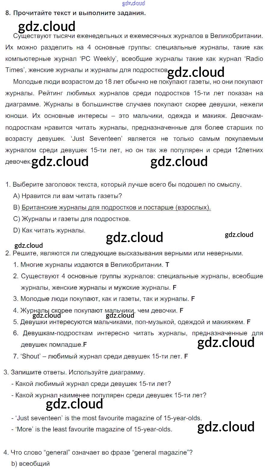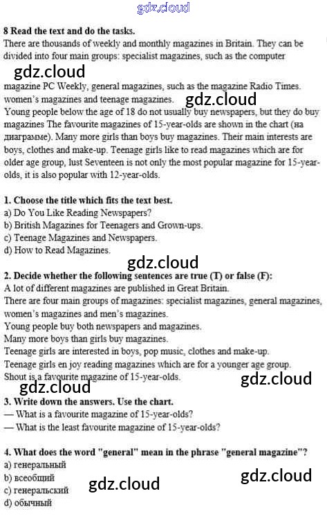 Ответ на задание 8 Учебник Английский язык  за 8 (восьмой) класс Биболетова, Трубанева Enjoy English  2015, 2017