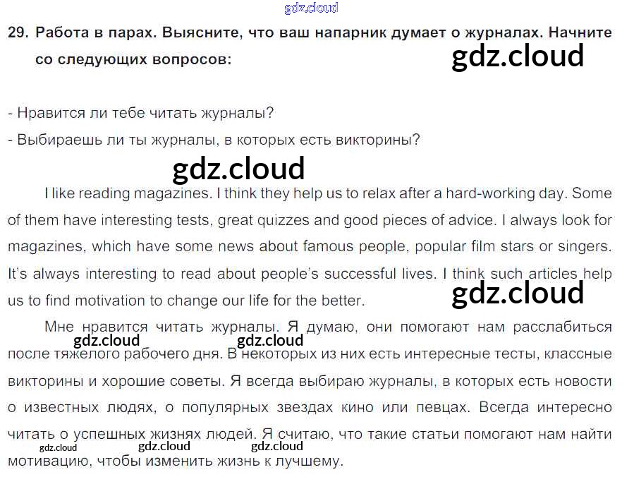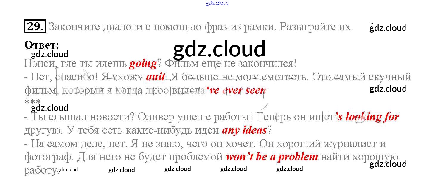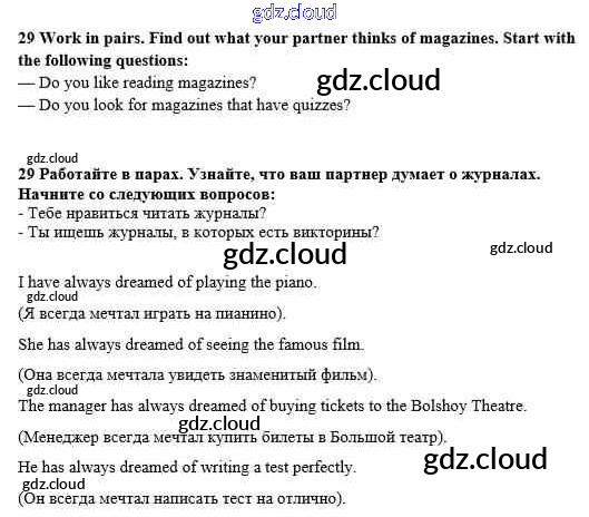 Ответ на задание 29 Учебник Английский язык  за 8 (восьмой) класс Биболетова, Трубанева Enjoy English  2015, 2017