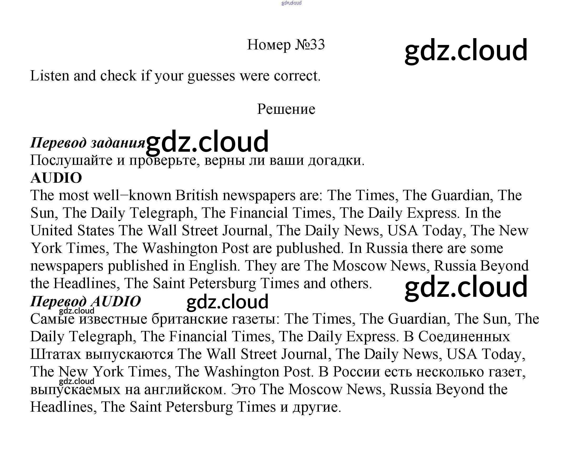 Ответ на задание 33 Учебник Английский язык  за 8 (восьмой) класс Биболетова, Трубанева Enjoy English  2015, 2017