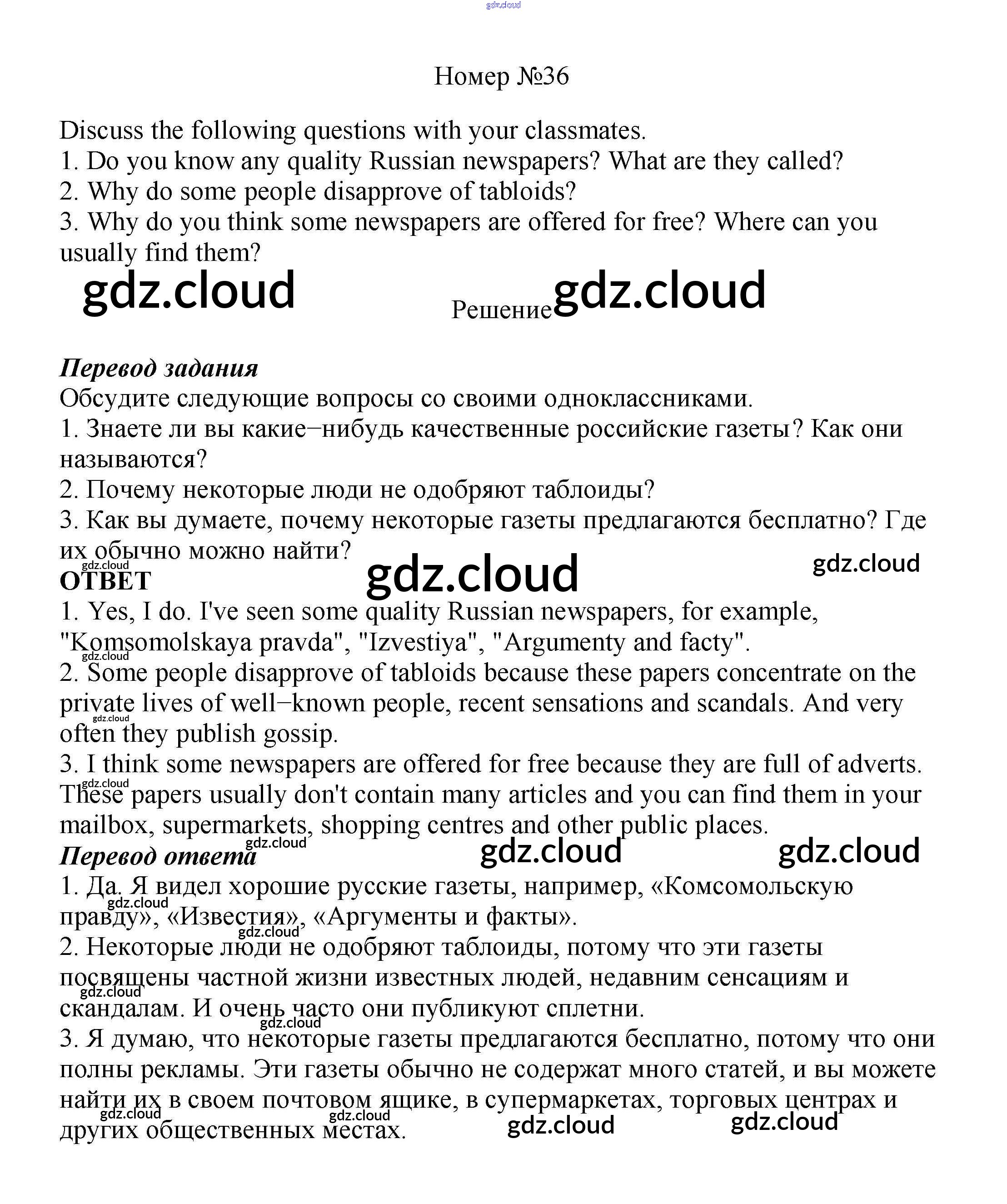 Ответ на задание 36 Учебник Английский язык  за 8 (восьмой) класс Биболетова, Трубанева Enjoy English  2015, 2017