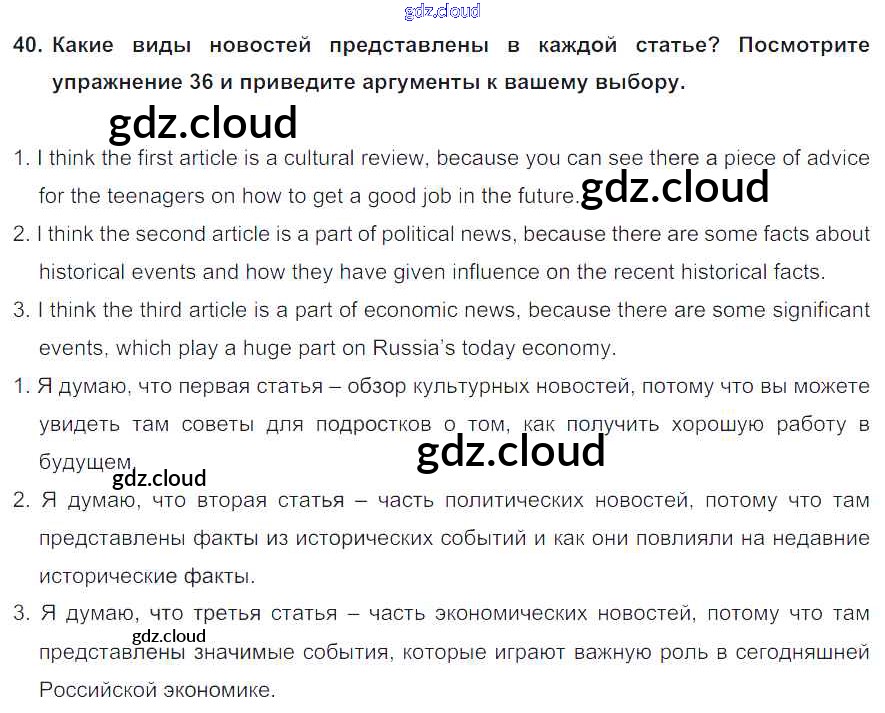 Ответ на задание 40 Учебник Английский язык  за 8 (восьмой) класс Биболетова, Трубанева Enjoy English  2015, 2017