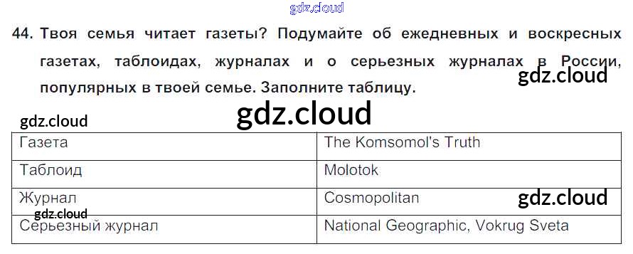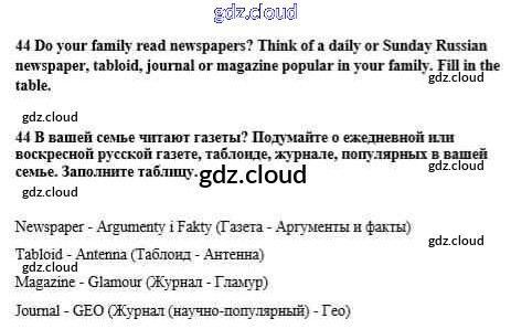 Ответ на задание 44 Учебник Английский язык  за 8 (восьмой) класс Биболетова, Трубанева Enjoy English  2015, 2017