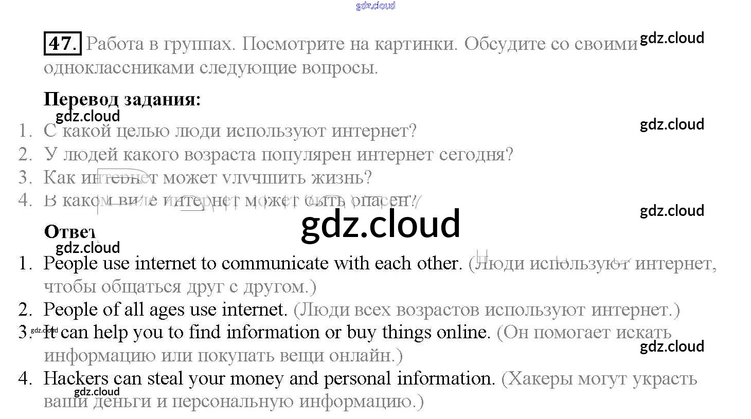 Ответ на задание 47 Учебник Английский язык  за 8 (восьмой) класс Биболетова, Трубанева Enjoy English  2015, 2017