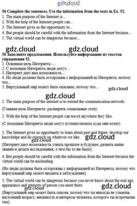 Ответ на задание 56 Учебник Английский язык  за 8 (восьмой) класс Биболетова, Трубанева Enjoy English  2015, 2017
