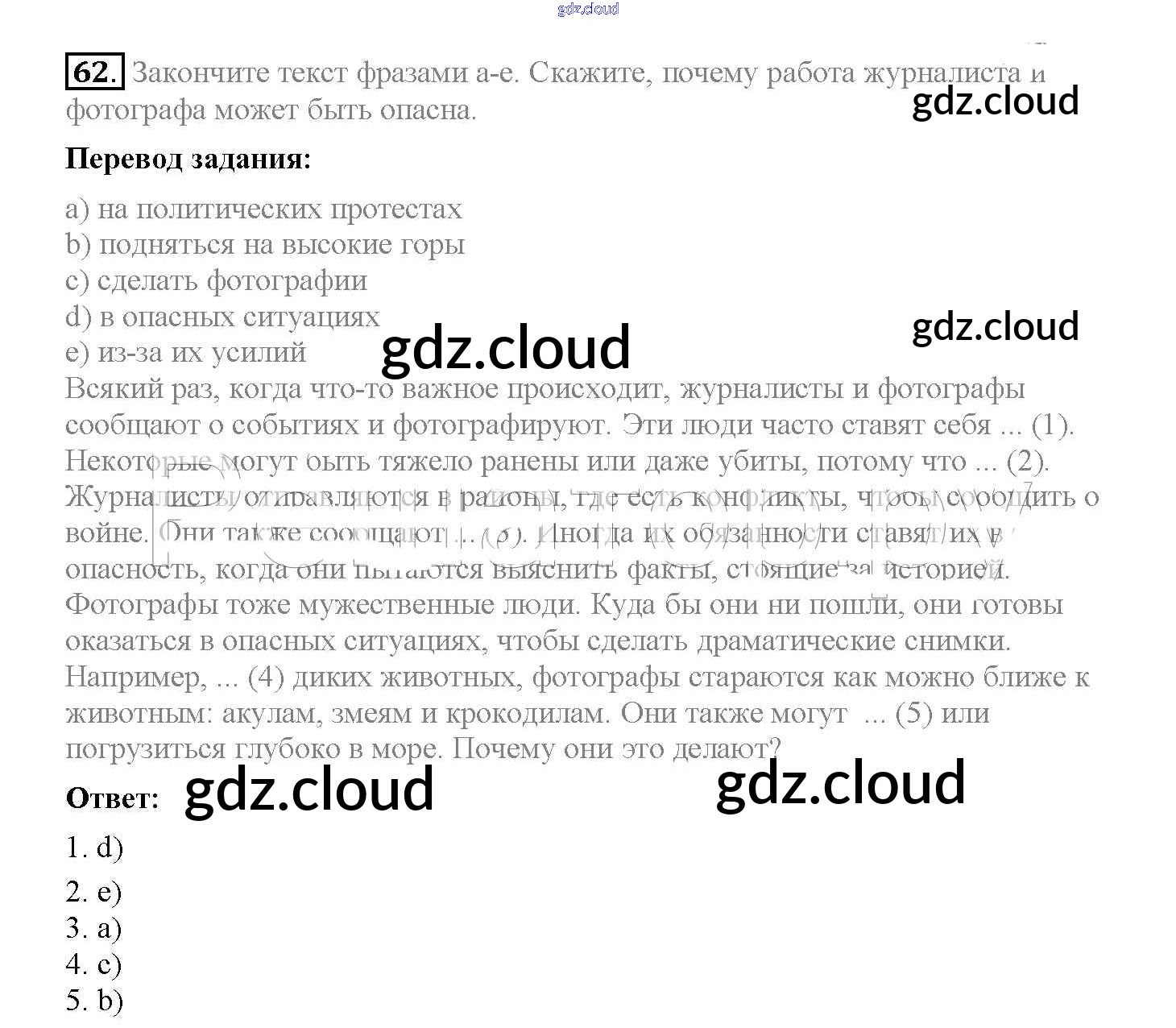 Ответ на задание 62 Учебник Английский язык  за 8 (восьмой) класс Биболетова, Трубанева Enjoy English  2015, 2017