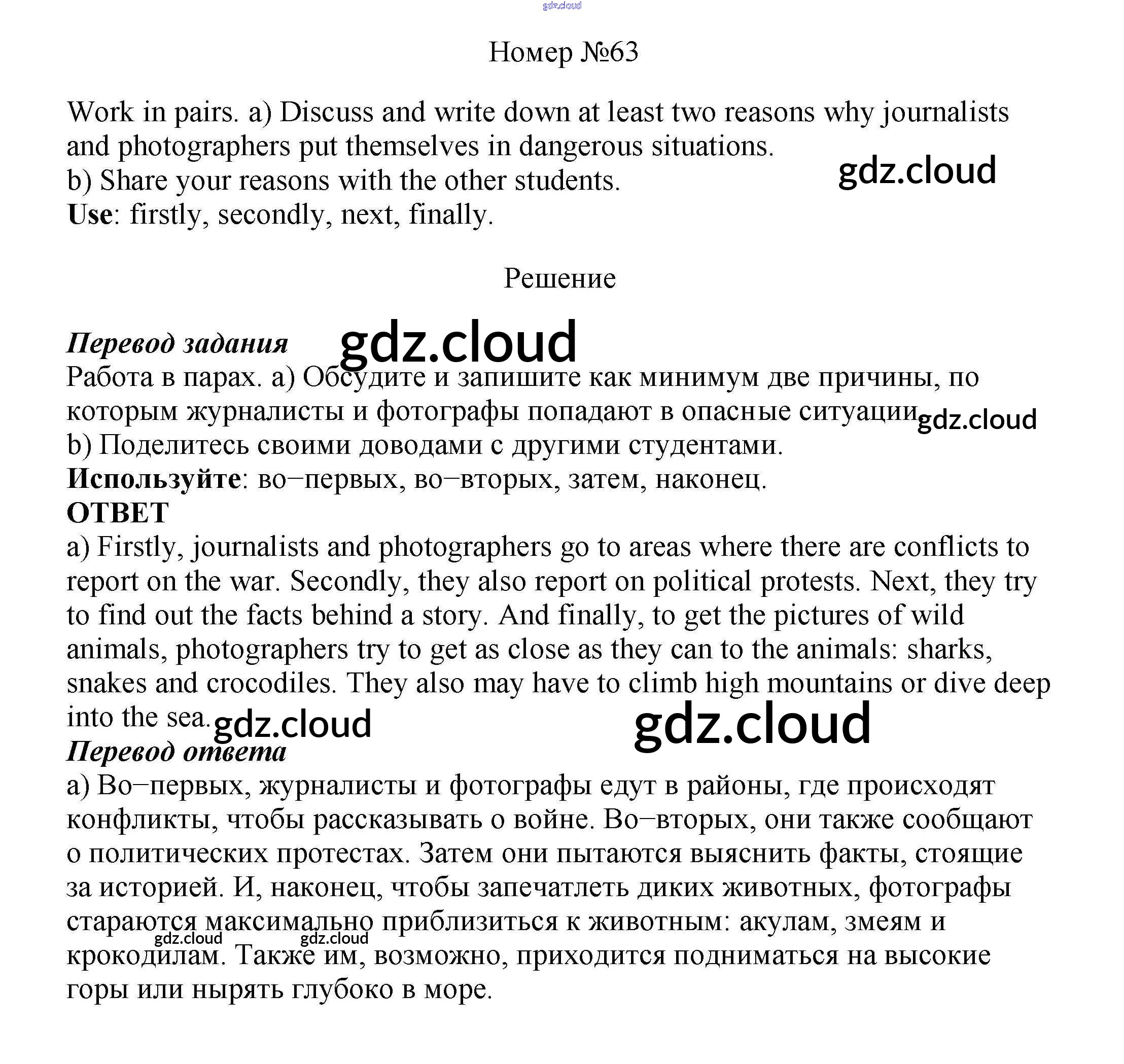 Ответ на задание 63 Учебник Английский язык  за 8 (восьмой) класс Биболетова, Трубанева Enjoy English  2015, 2017