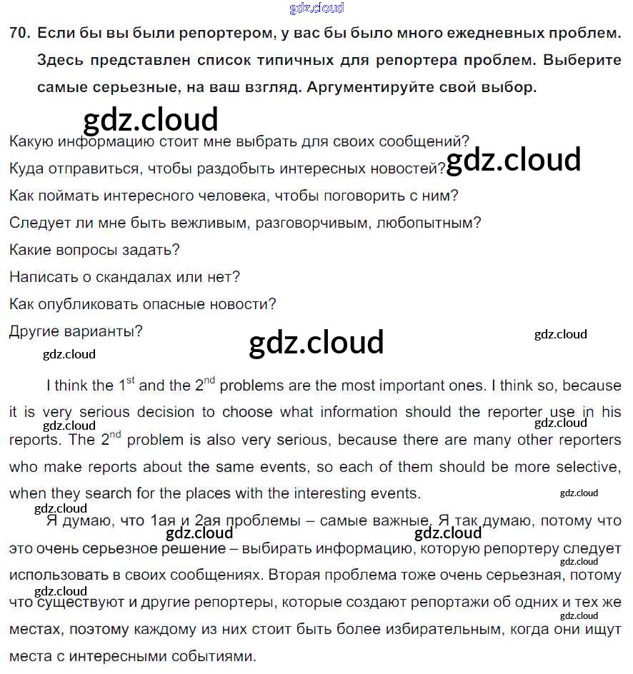 Ответ на задание 70 Учебник Английский язык  за 8 (восьмой) класс Биболетова, Трубанева Enjoy English  2015, 2017
