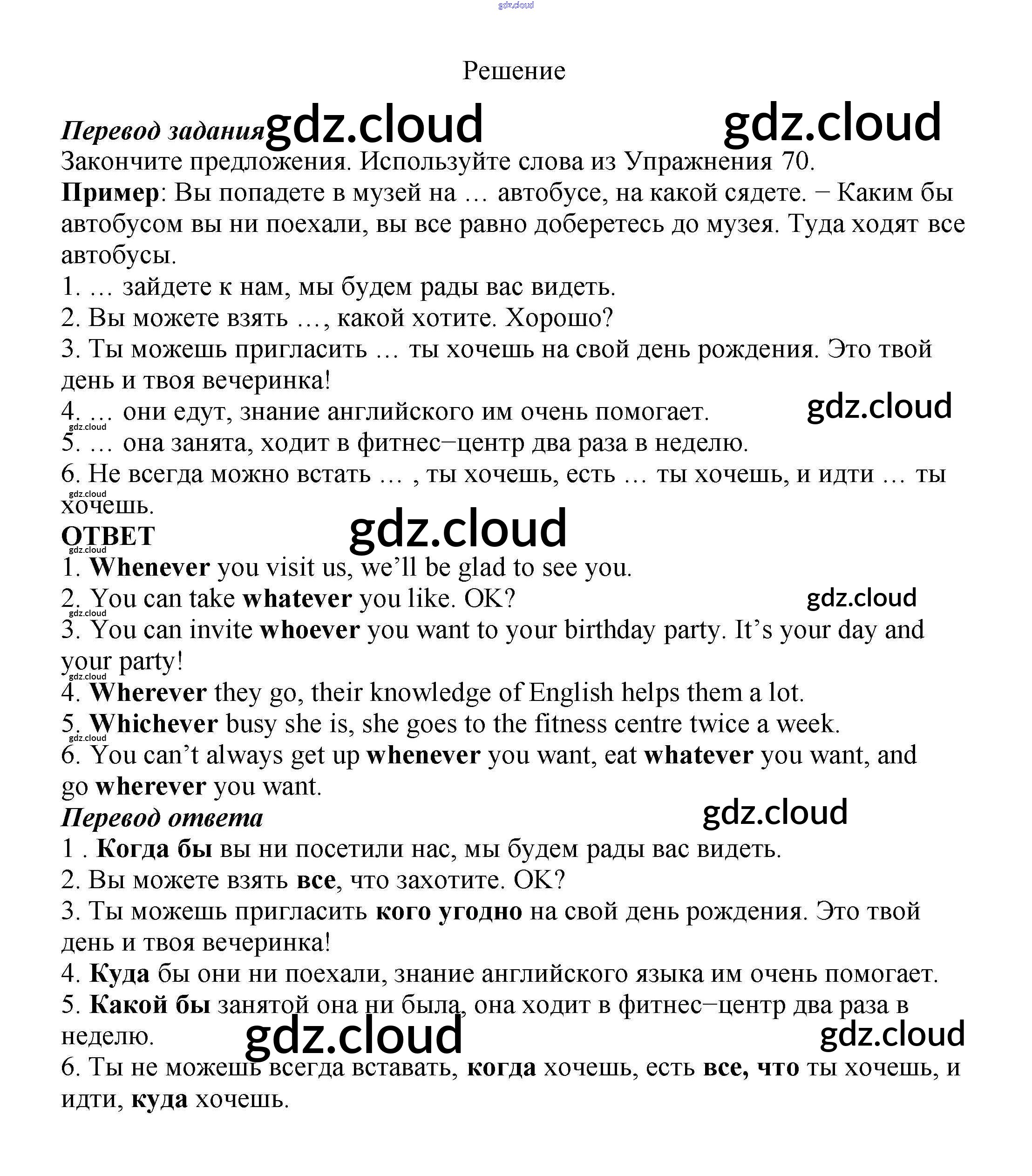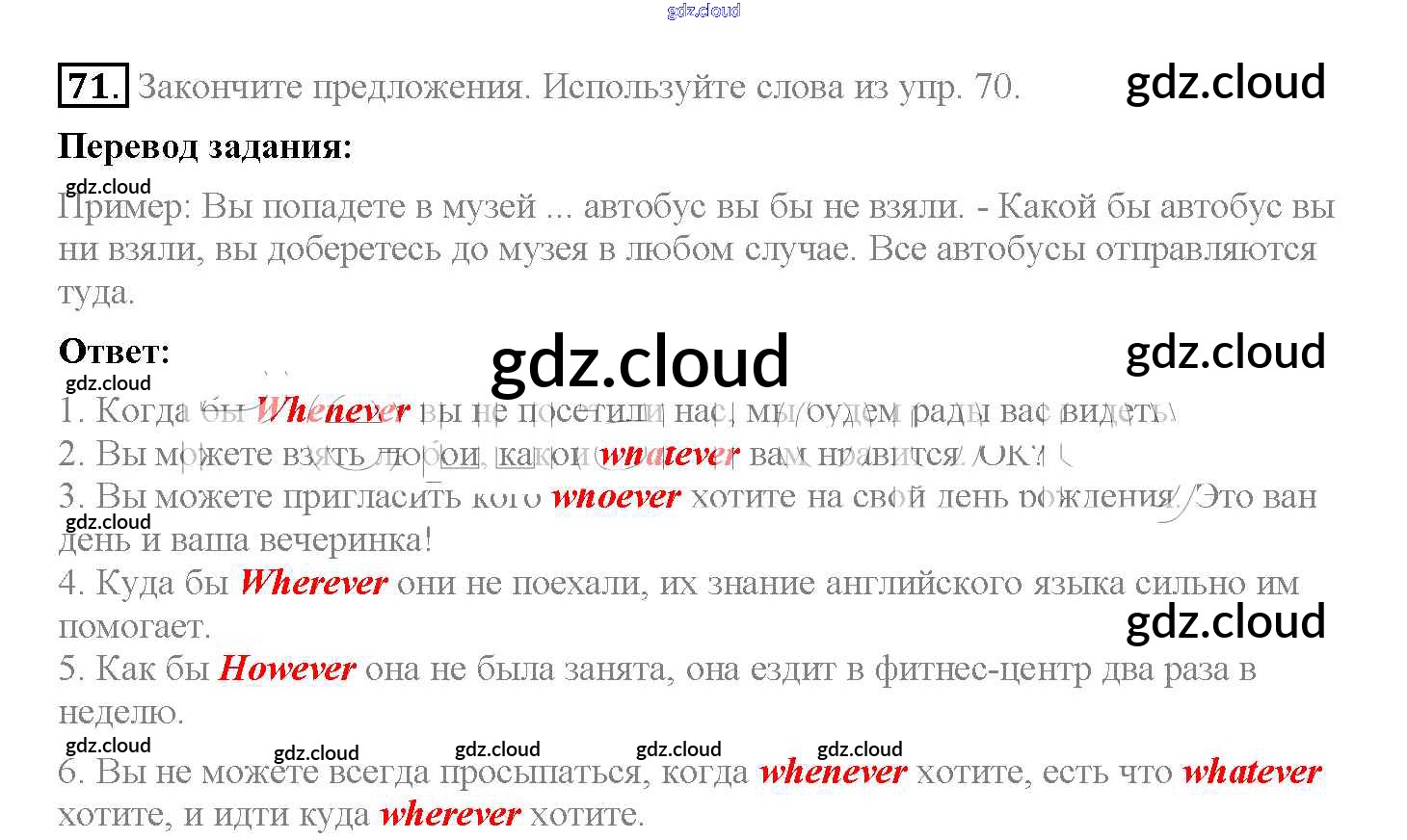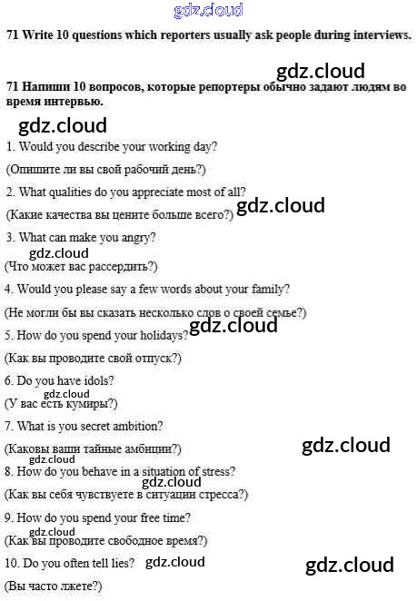 Ответ на задание 71 Учебник Английский язык  за 8 (восьмой) класс Биболетова, Трубанева Enjoy English  2015, 2017