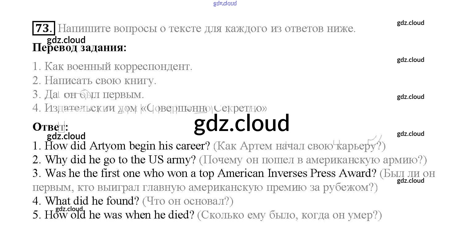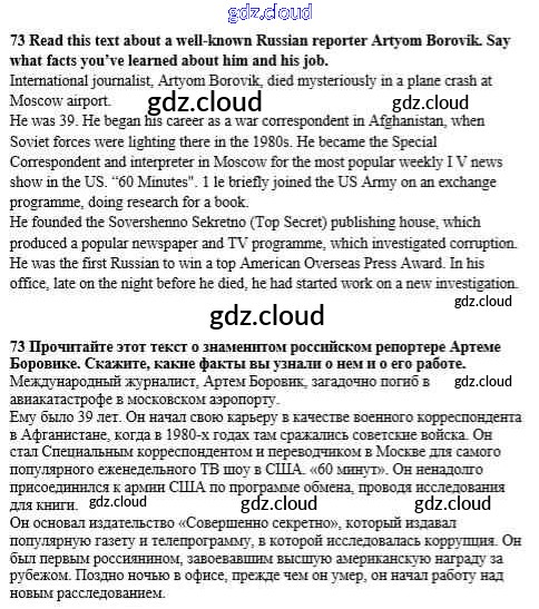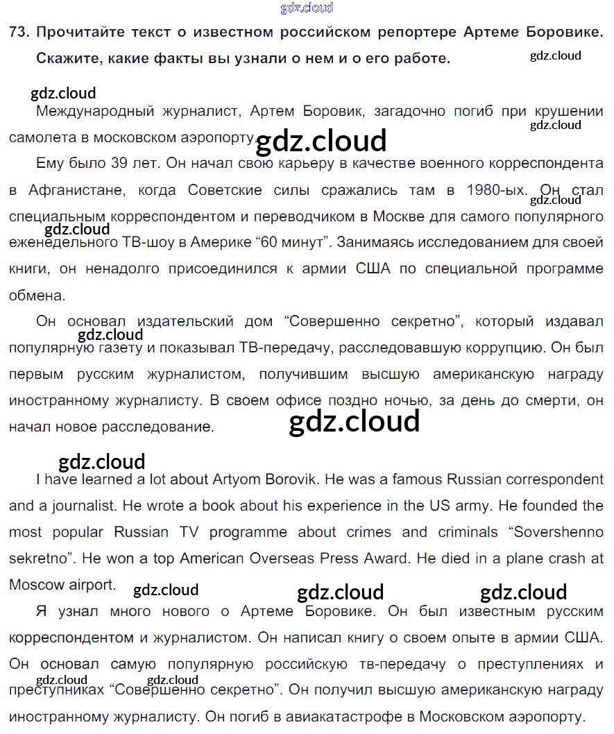 Ответ на задание 73 Учебник Английский язык  за 8 (восьмой) класс Биболетова, Трубанева Enjoy English  2015, 2017