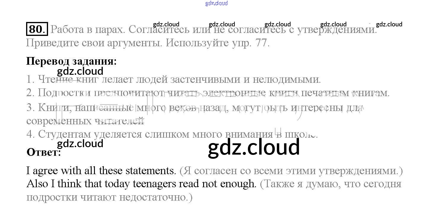 Ответ на задание 80 Учебник Английский язык  за 8 (восьмой) класс Биболетова, Трубанева Enjoy English  2015, 2017