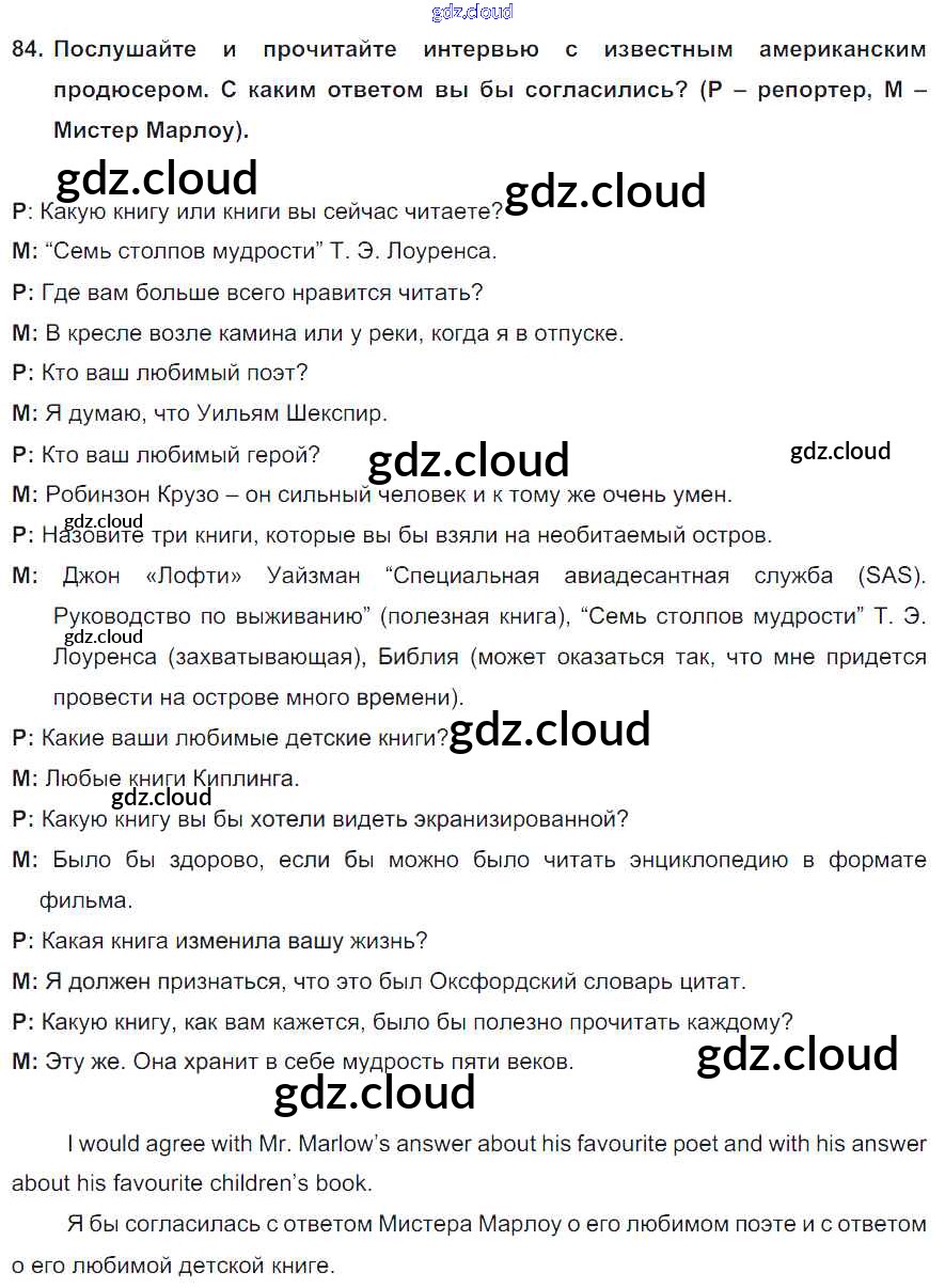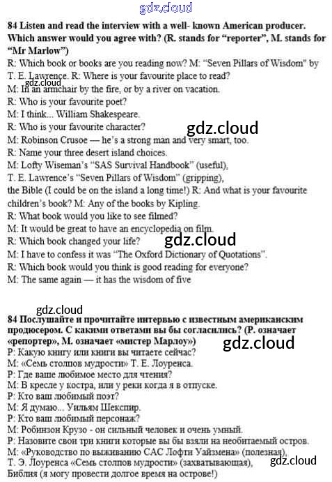 Ответ на задание 84 Учебник Английский язык  за 8 (восьмой) класс Биболетова, Трубанева Enjoy English  2015, 2017