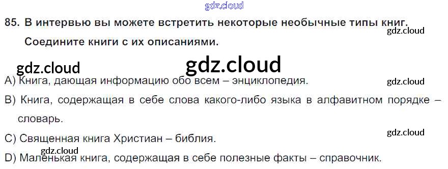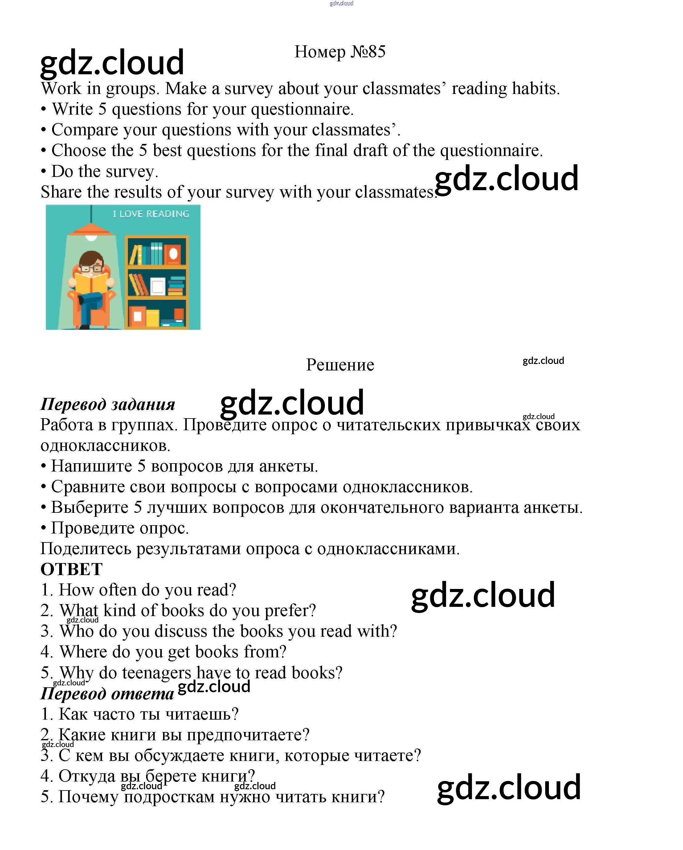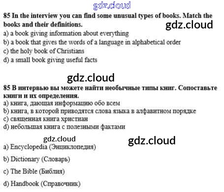 Ответ на задание 85 Учебник Английский язык  за 8 (восьмой) класс Биболетова, Трубанева Enjoy English  2015, 2017