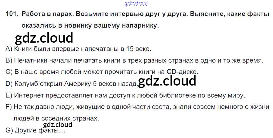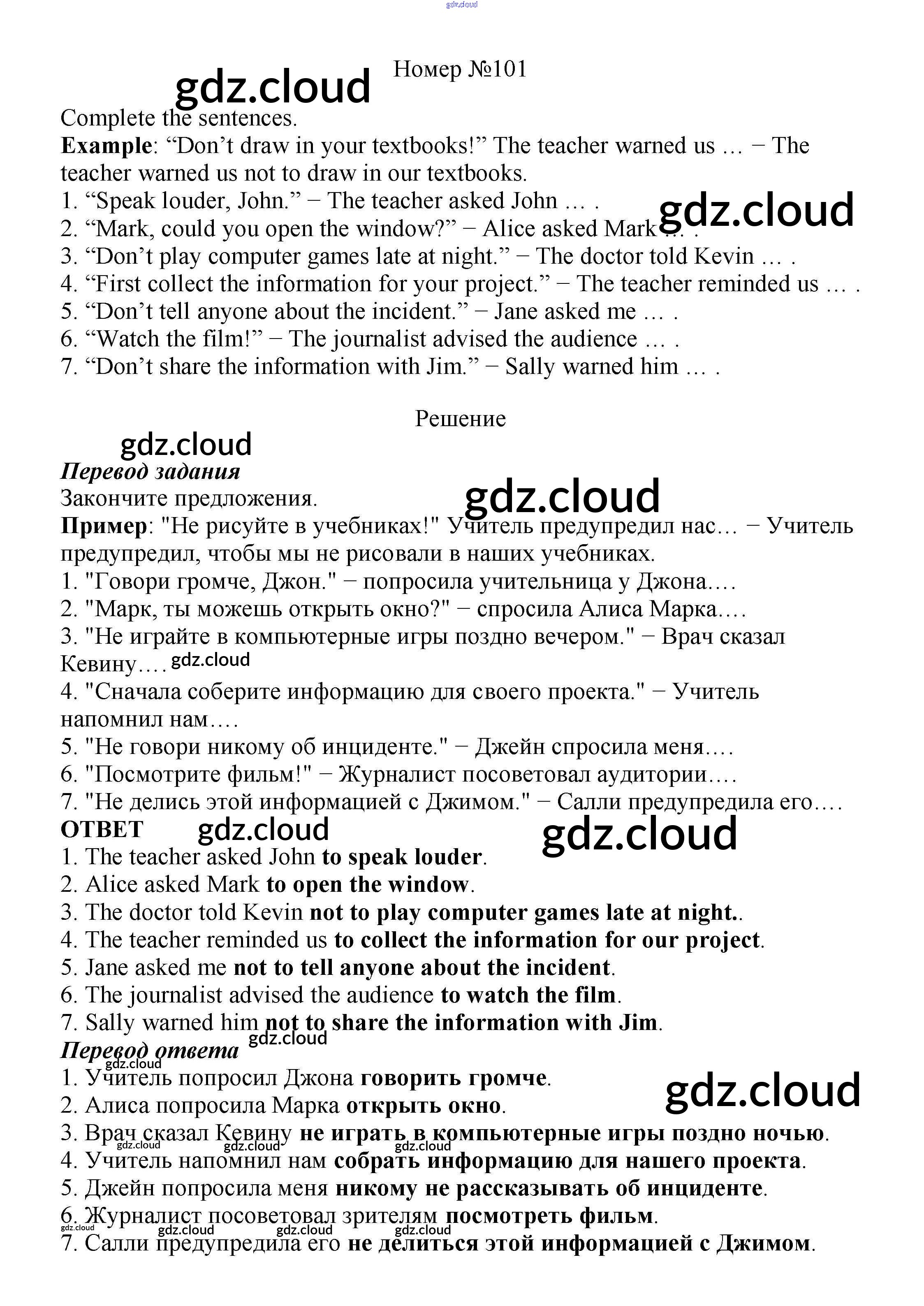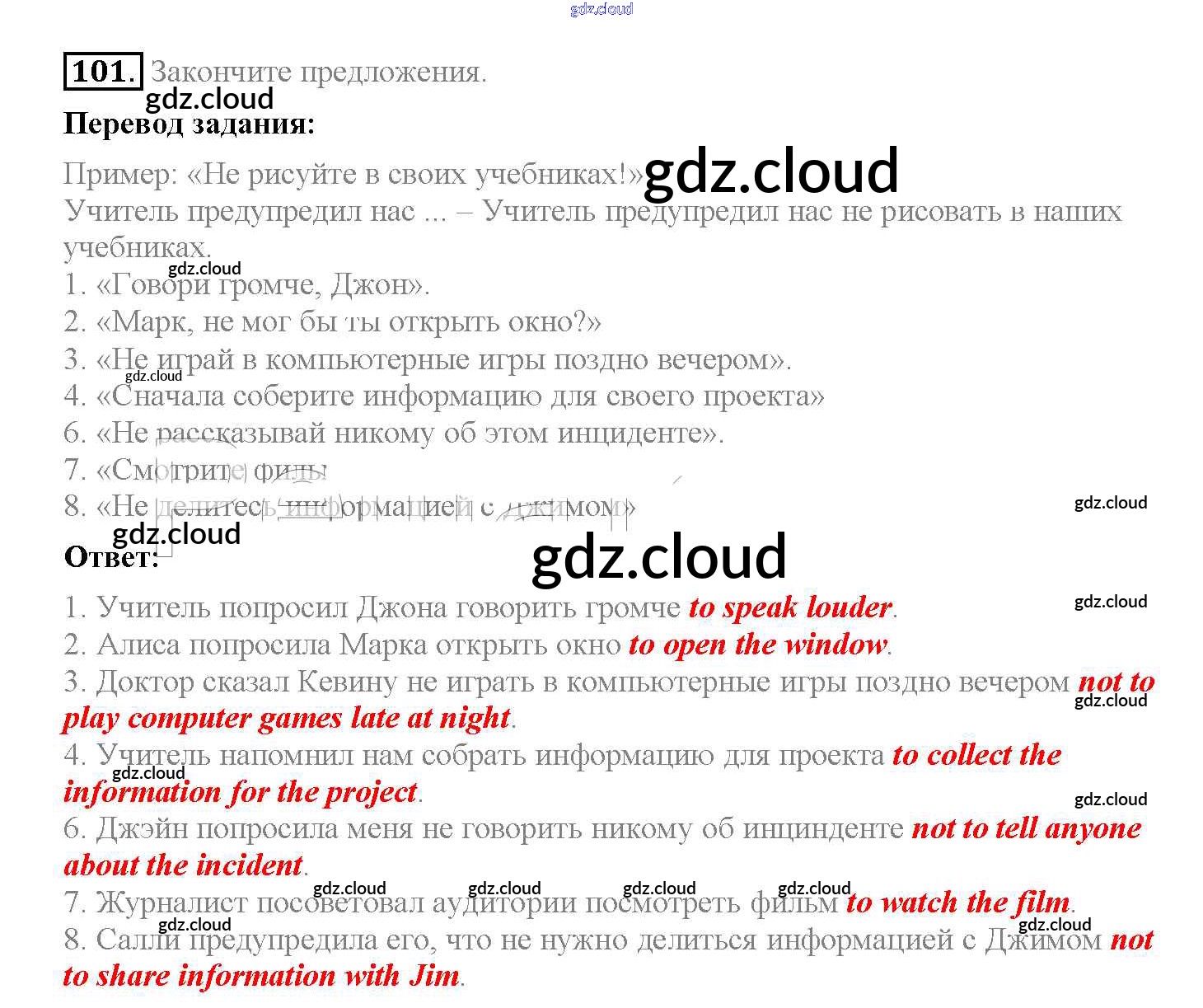 Ответ на задание 101 Учебник Английский язык  за 8 (восьмой) класс Биболетова, Трубанева Enjoy English  2015, 2017