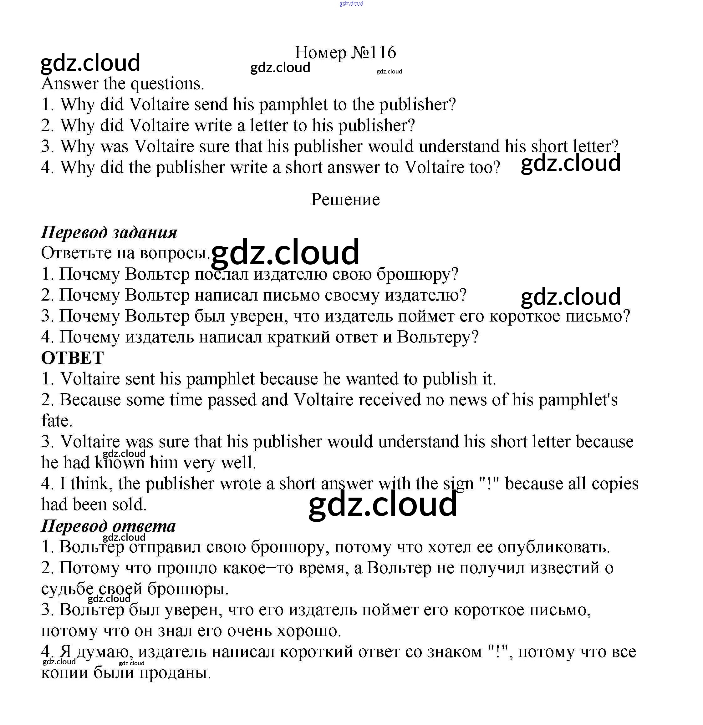 Ответ на задание 116 Учебник Английский язык  за 8 (восьмой) класс Биболетова, Трубанева Enjoy English  2015, 2017