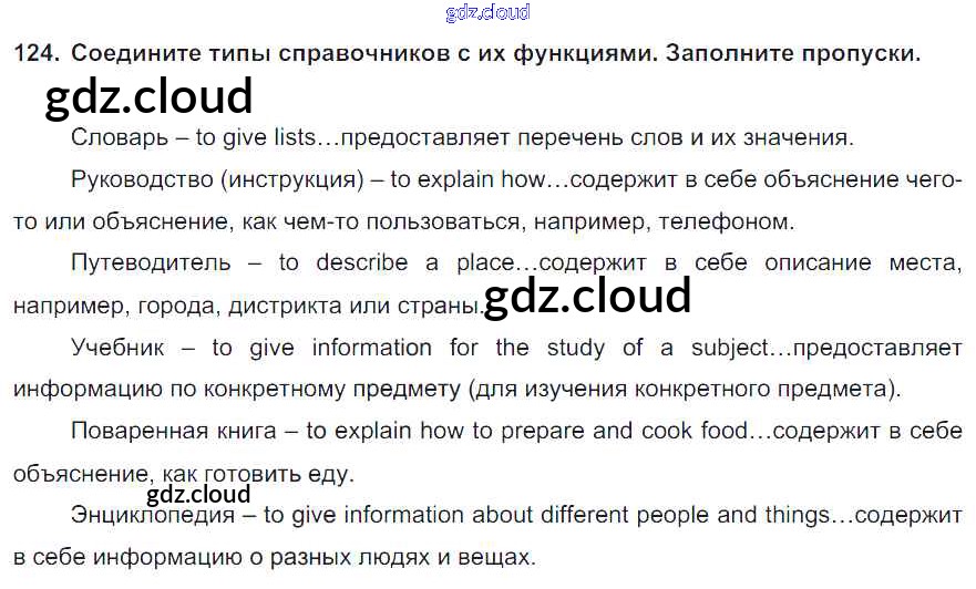 Ответ на задание 124 Учебник Английский язык  за 8 (восьмой) класс Биболетова, Трубанева Enjoy English  2015, 2017