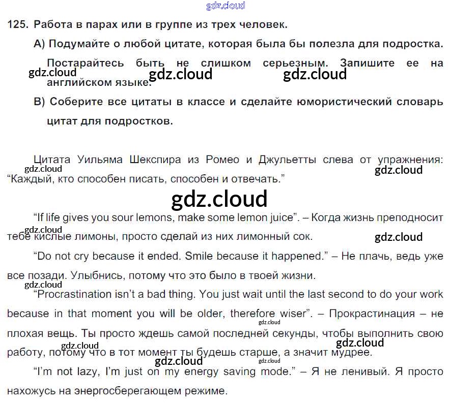 Ответ на задание 125 Учебник Английский язык  за 8 (восьмой) класс Биболетова, Трубанева Enjoy English  2015, 2017