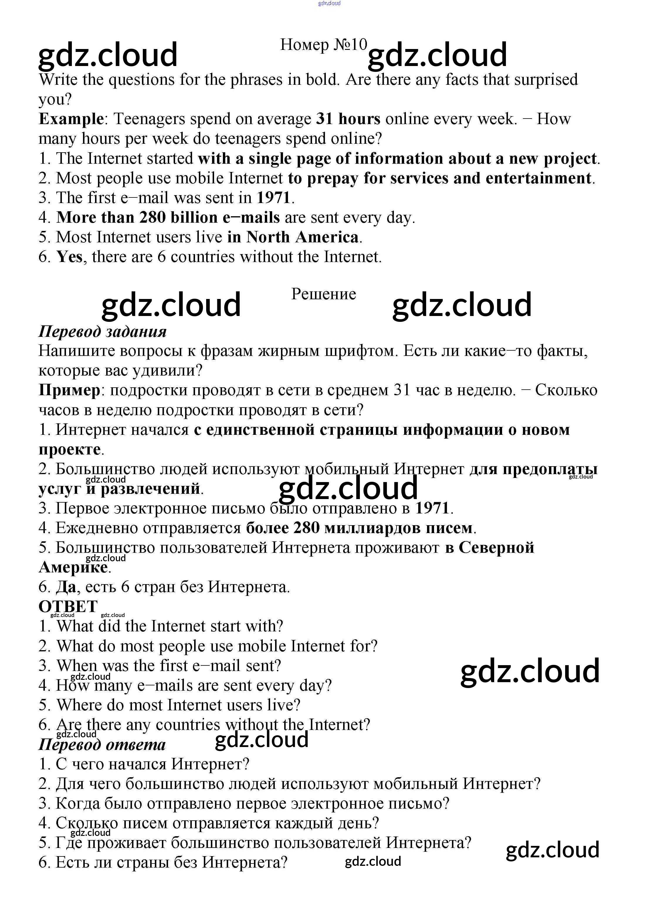 Ответ на задание 10 Учебник Английский язык  за 8 (восьмой) класс Биболетова, Трубанева Enjoy English  2015, 2017