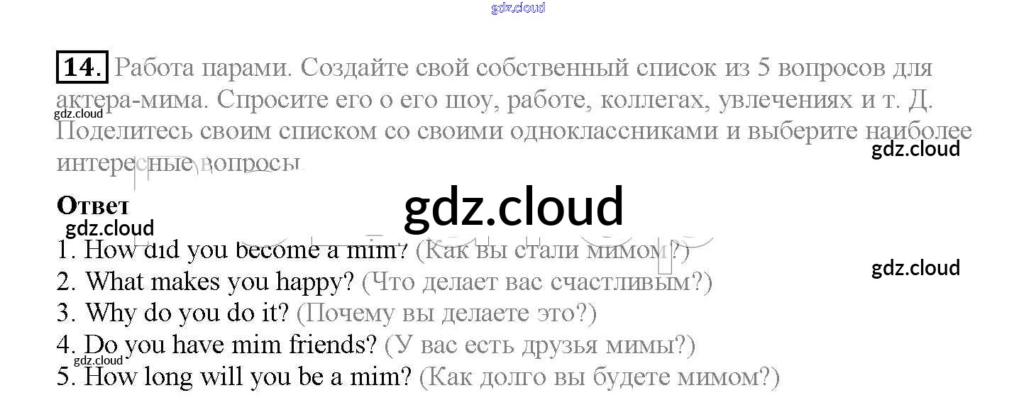Ответ на задание 14 Учебник Английский язык  за 8 (восьмой) класс Биболетова, Трубанева Enjoy English  2015, 2017
